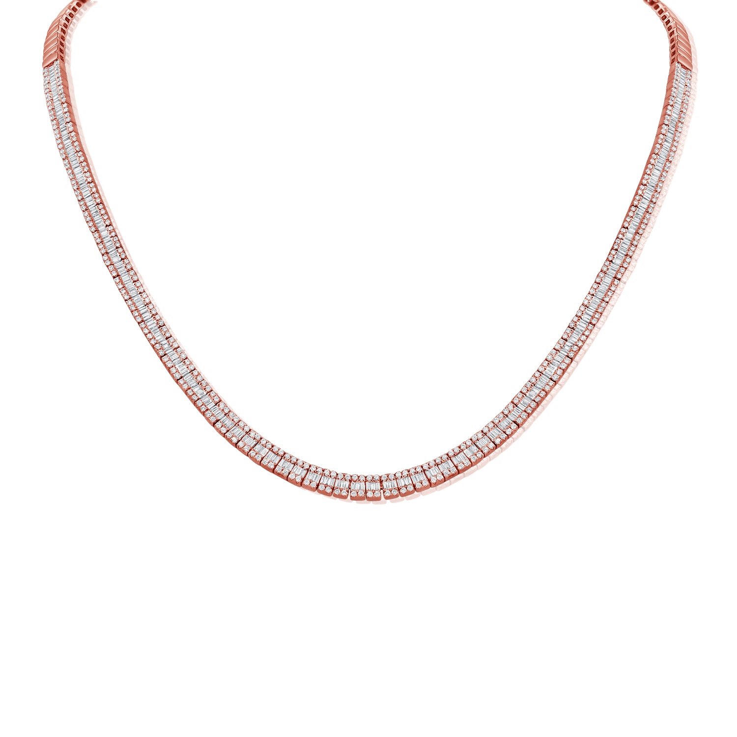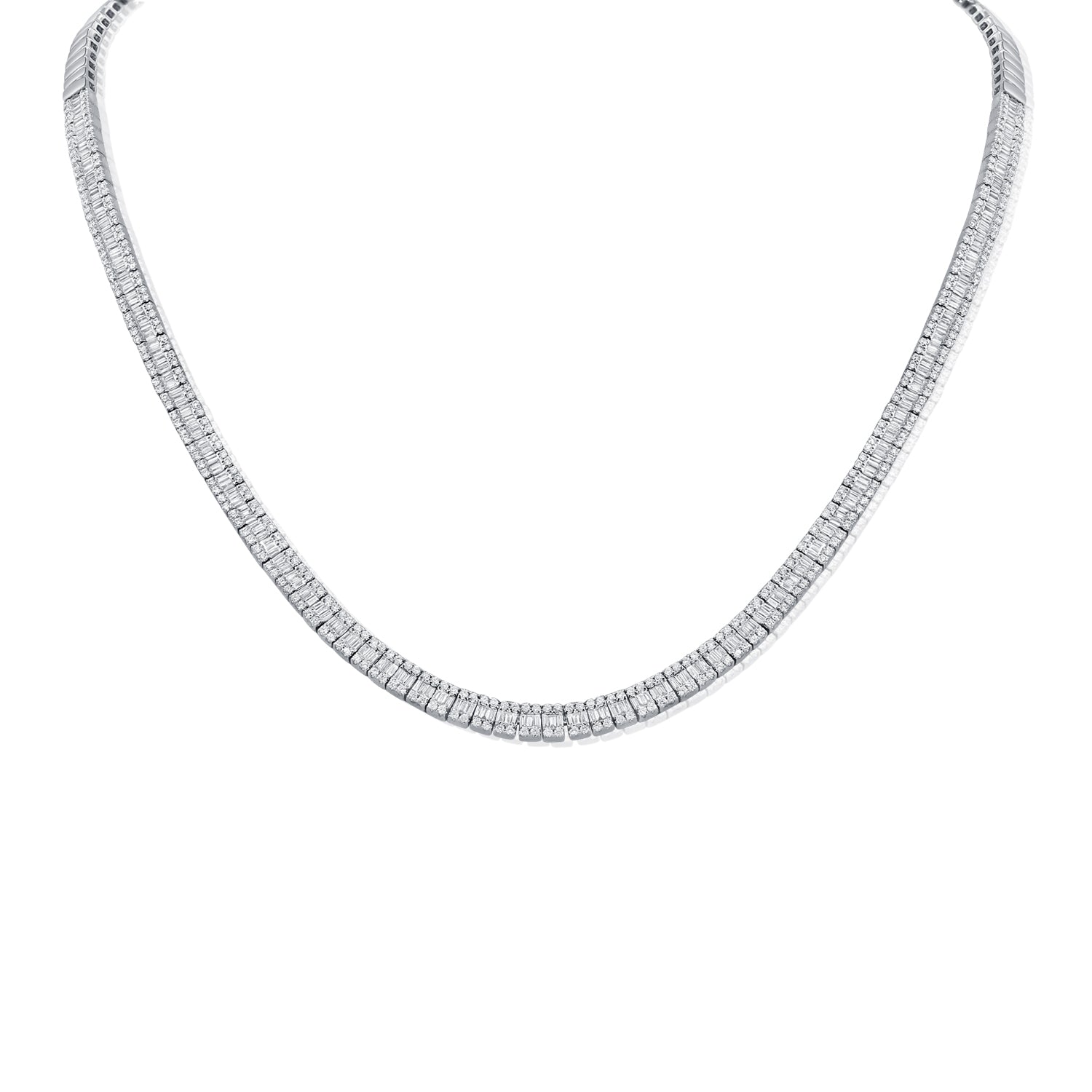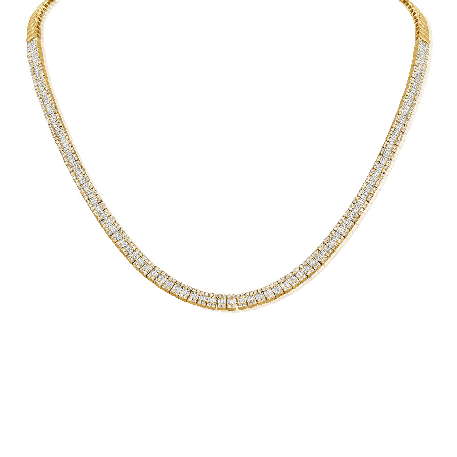 14K GOLD BAGUETTE & ROUND DIAMOND NECKLACE