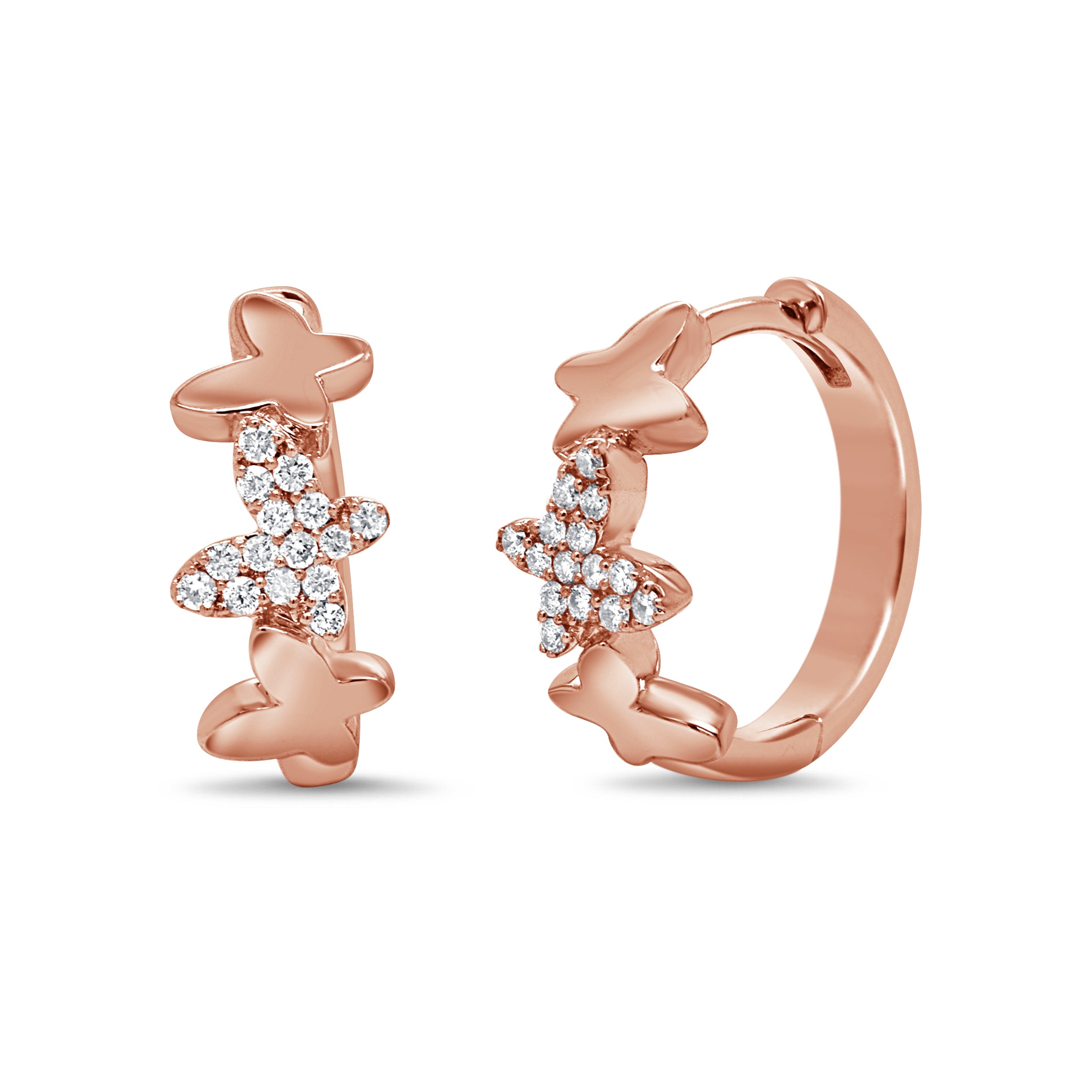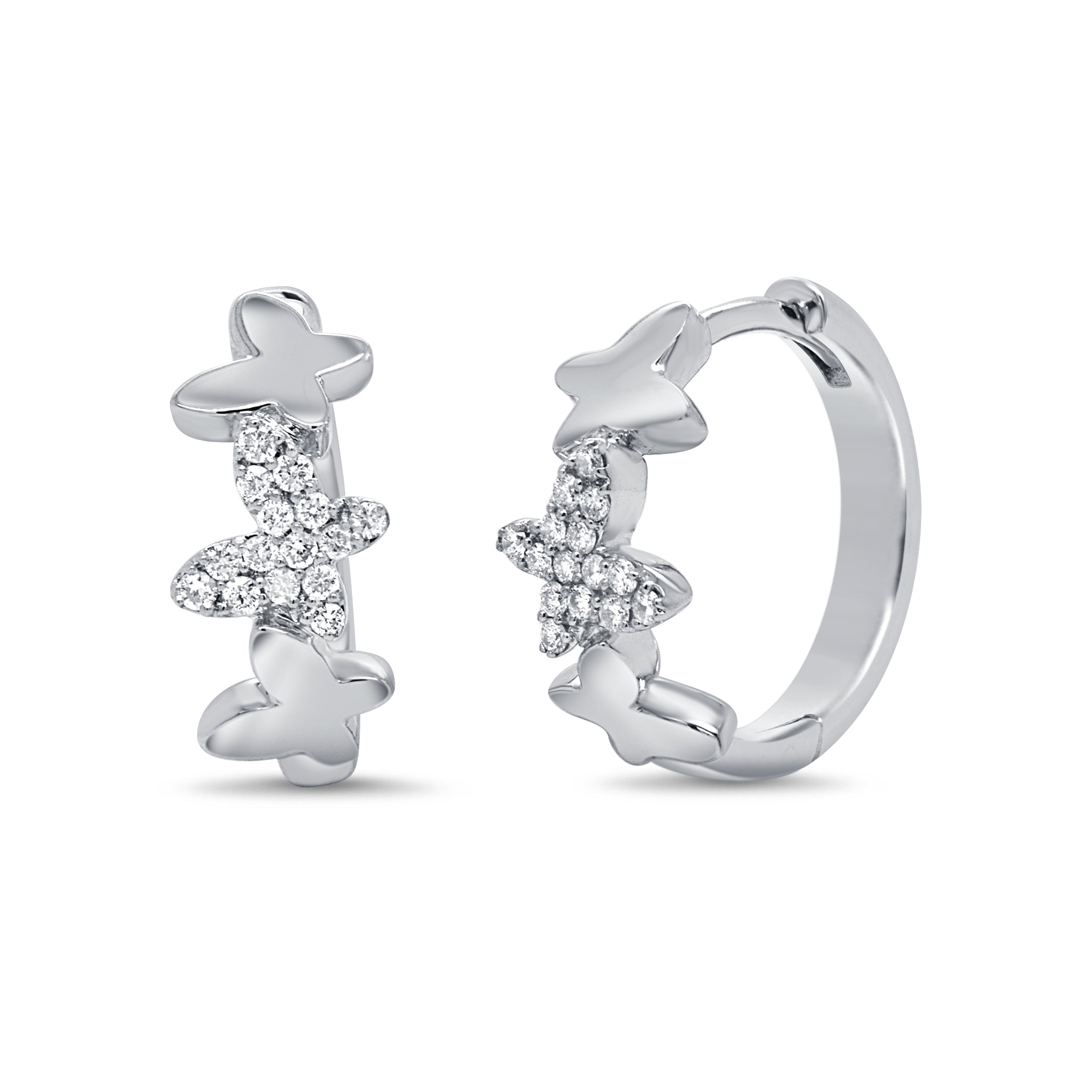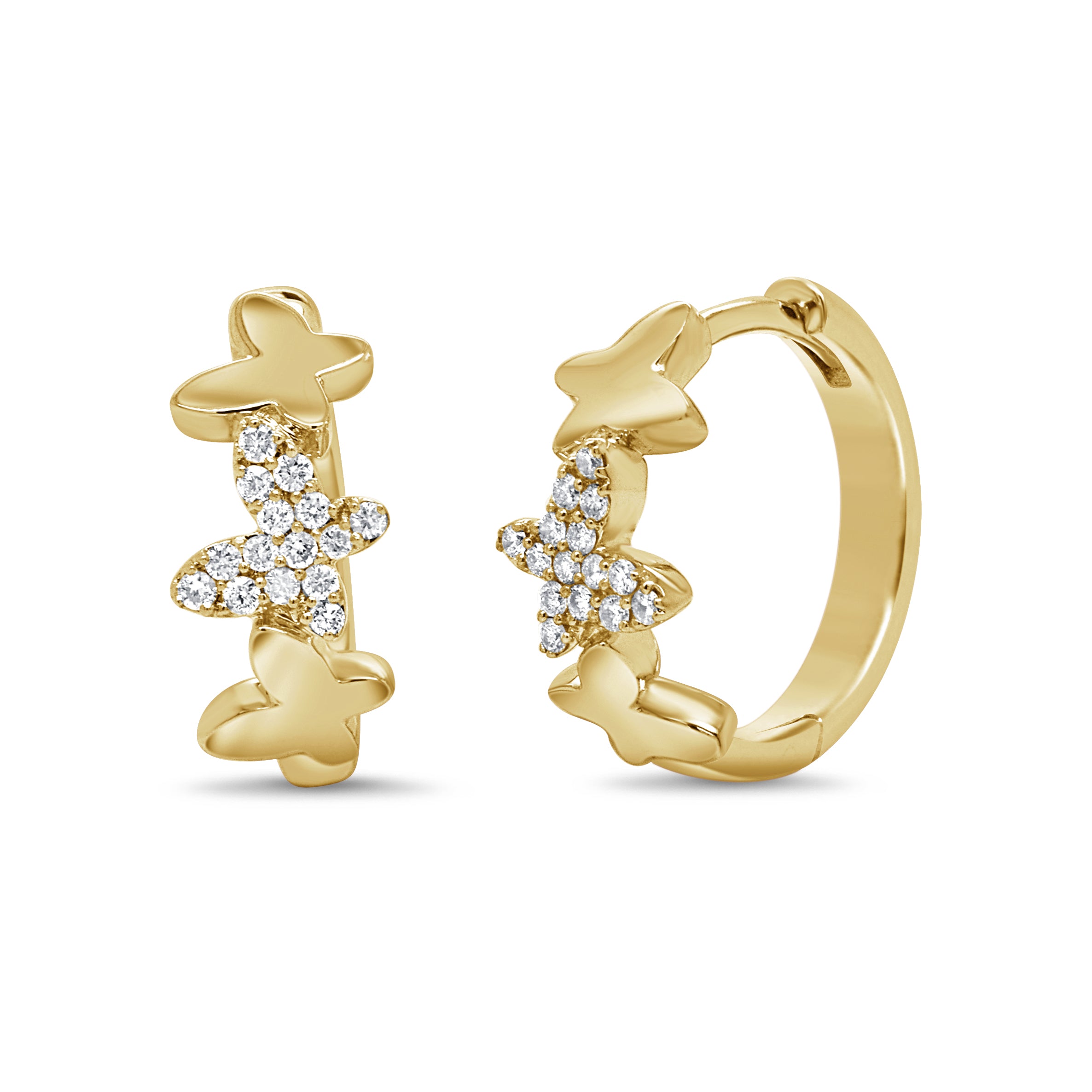 14K Gold Butterfly & Diamond Hoop Earrings - 0.15ct