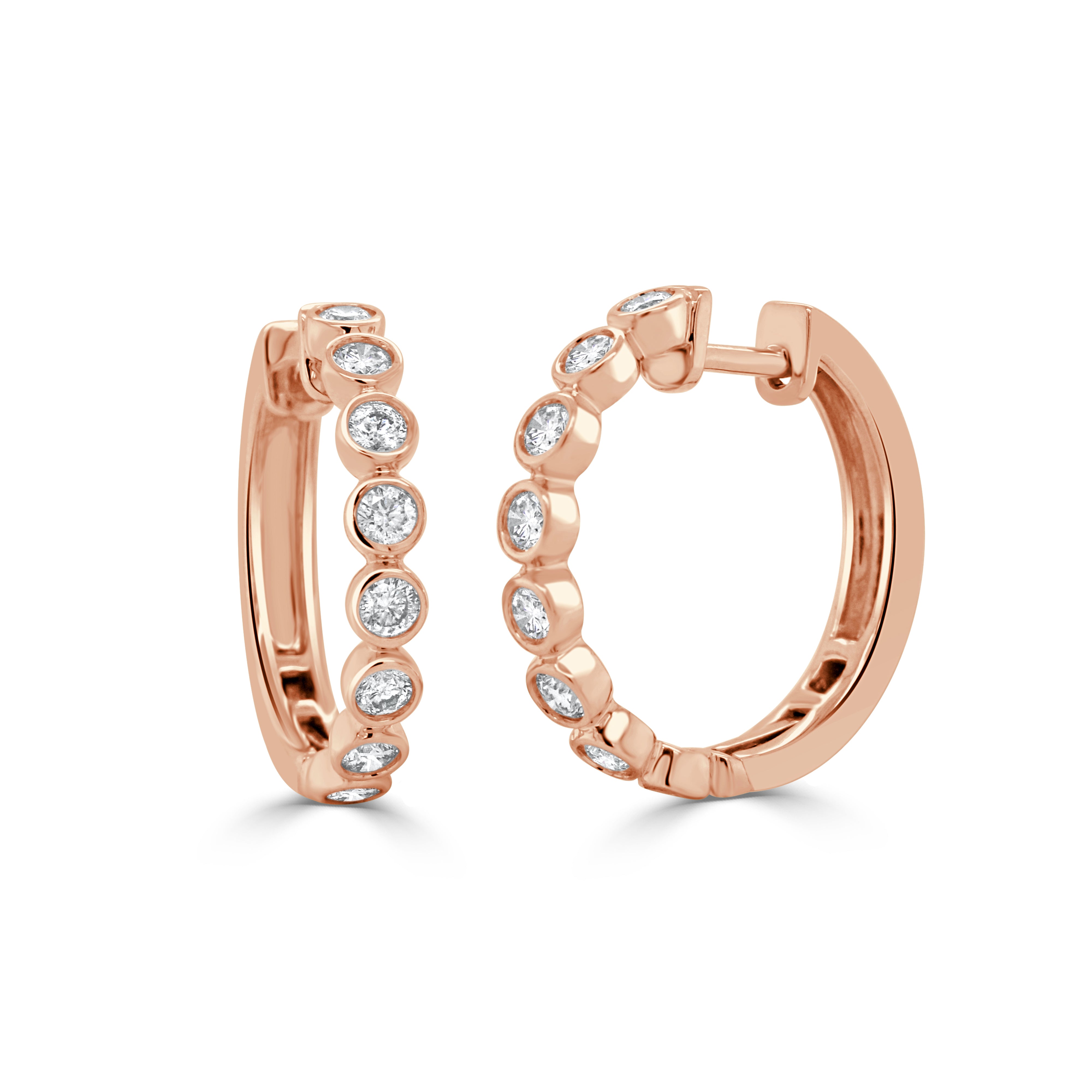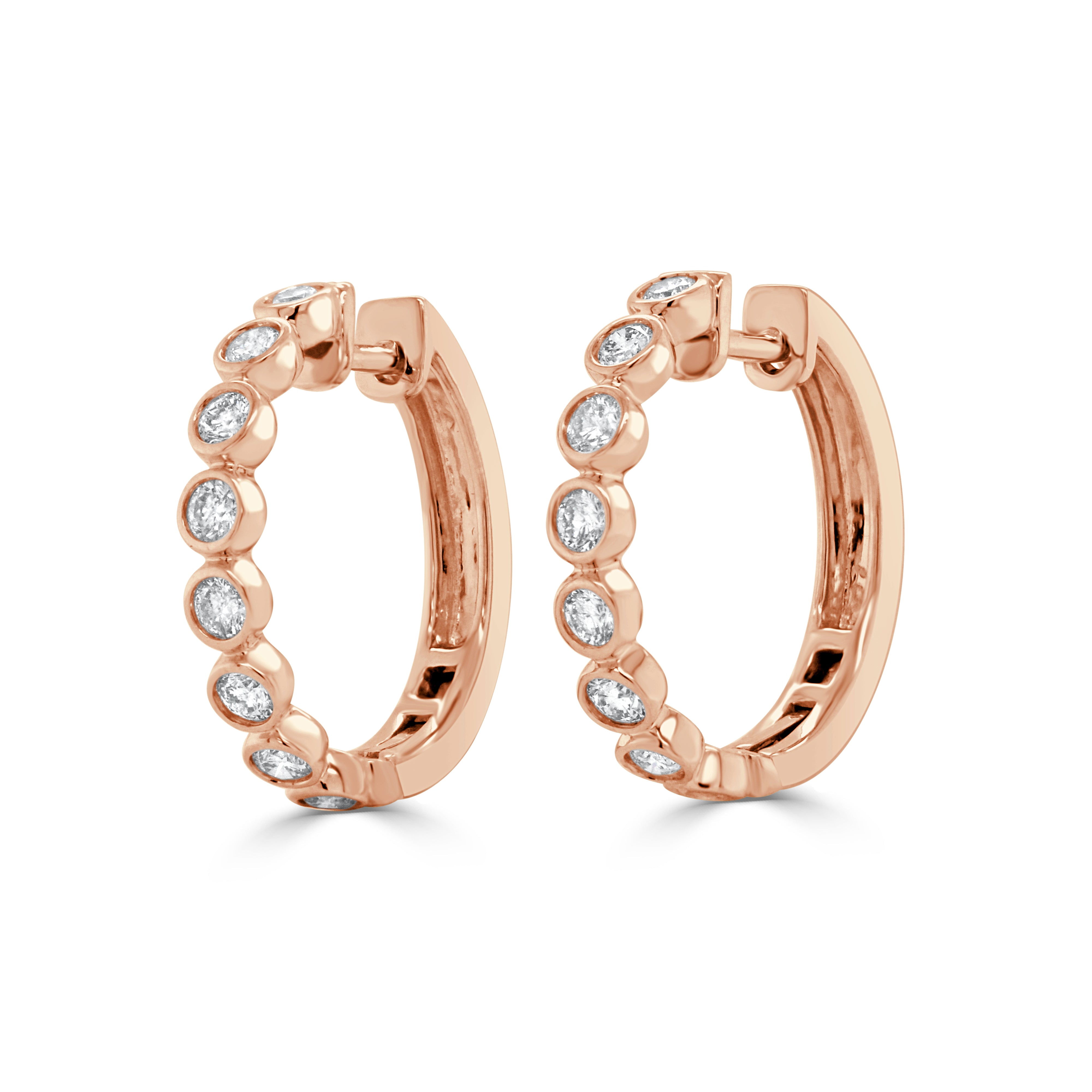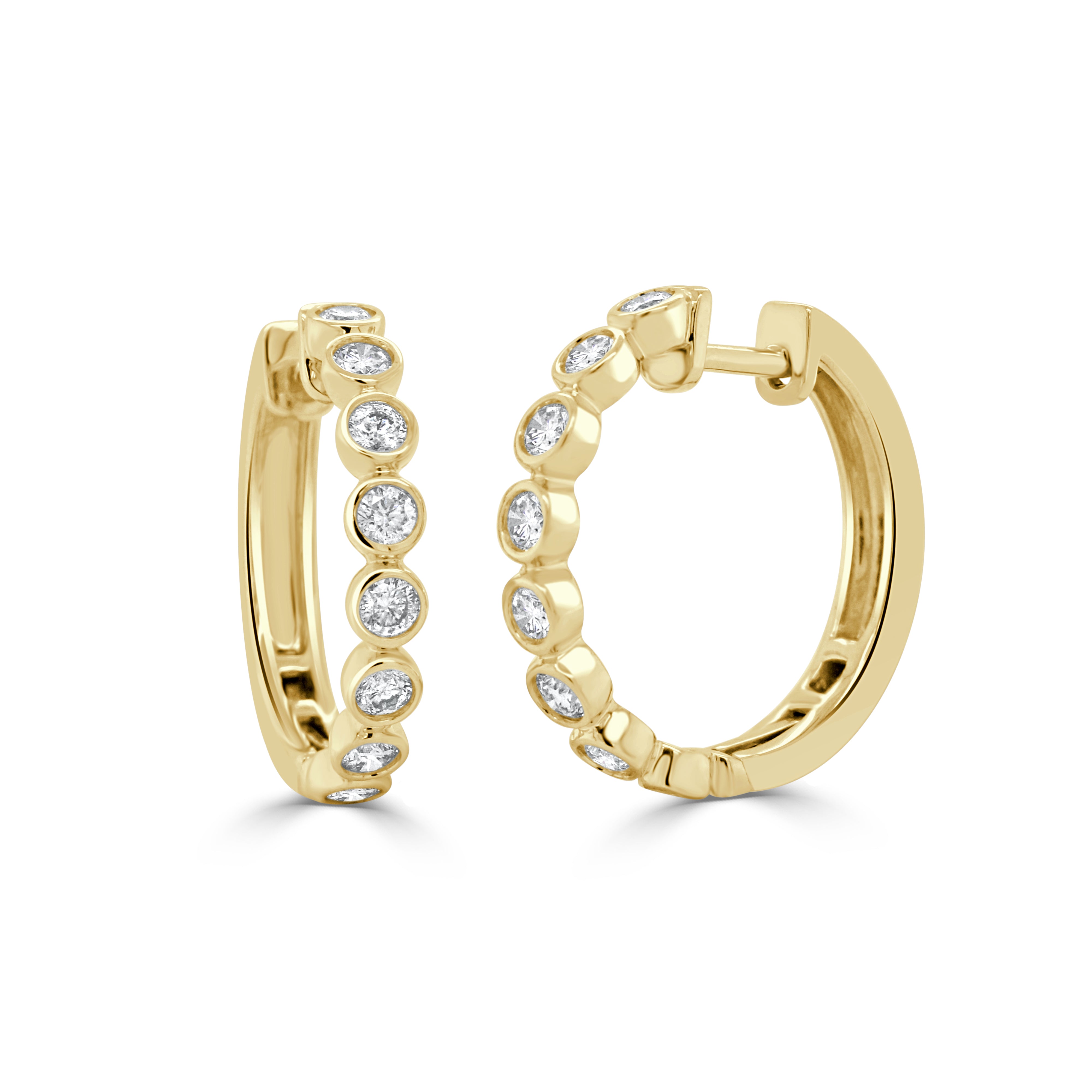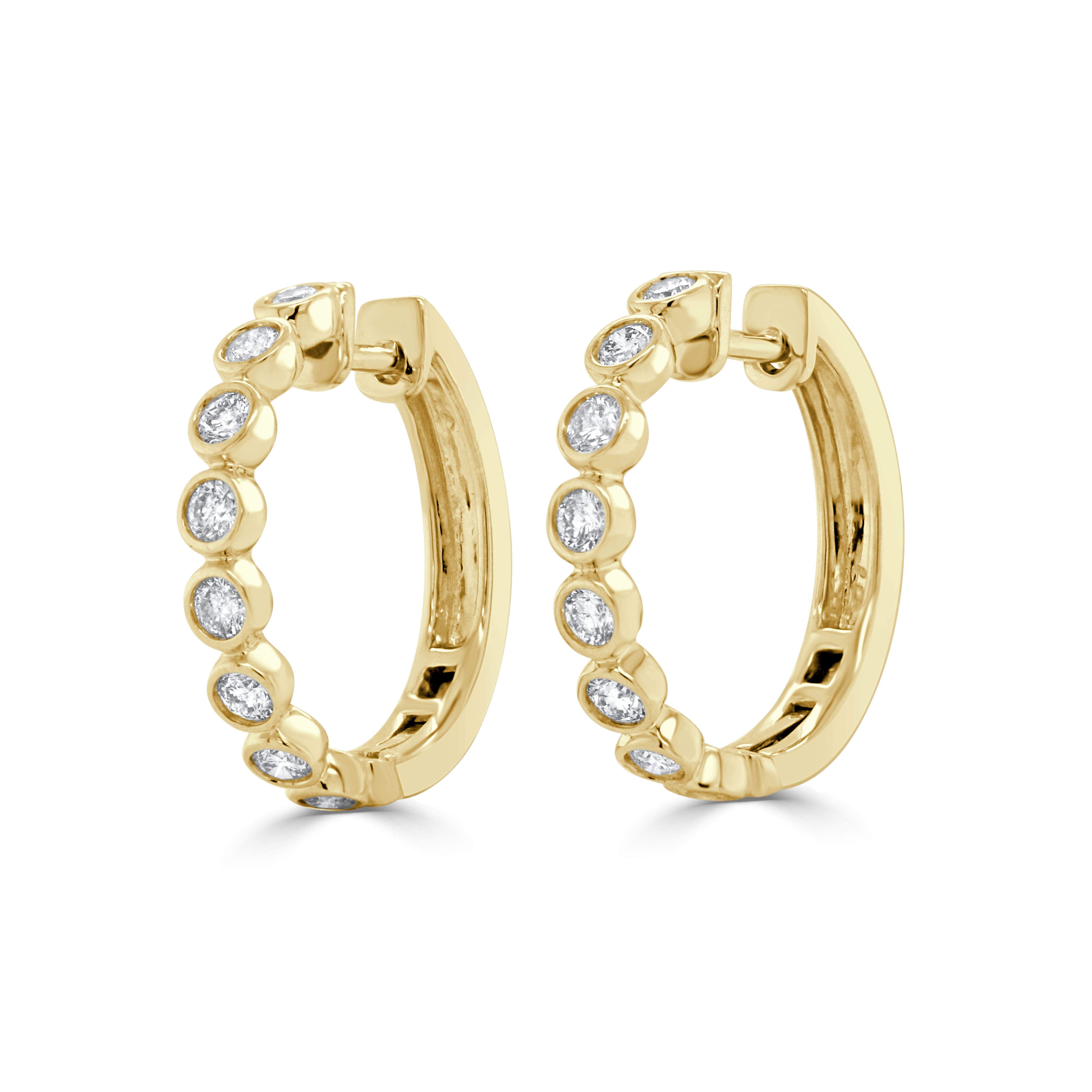 14K GOLD DIAMOND BEZEL SET HUGGIE EARRINGS