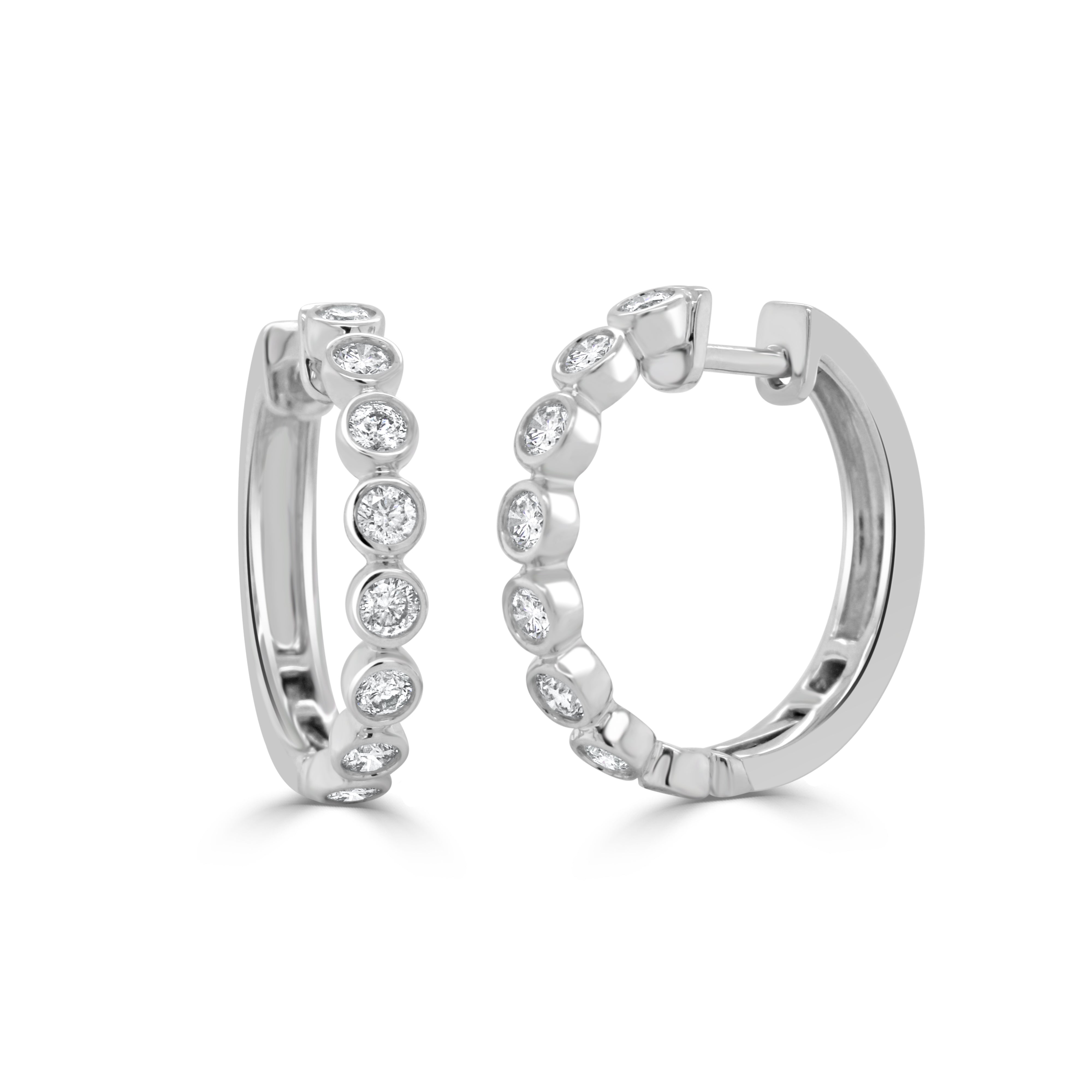 14K Gold Diamond Bezel Set Huggie Earrings - 1.02ct