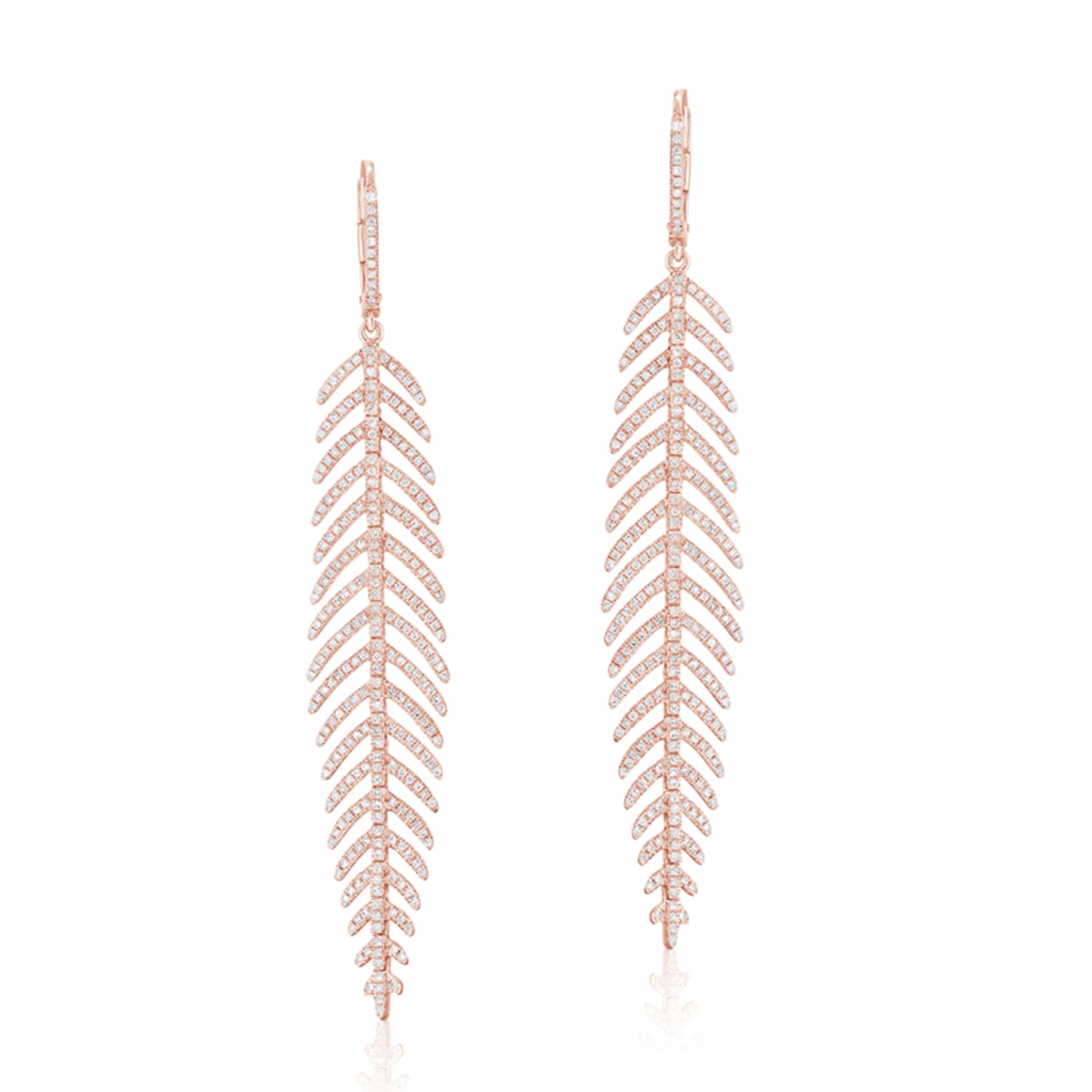 14k Gold & Diamond Feather Earrings - 1.54ct