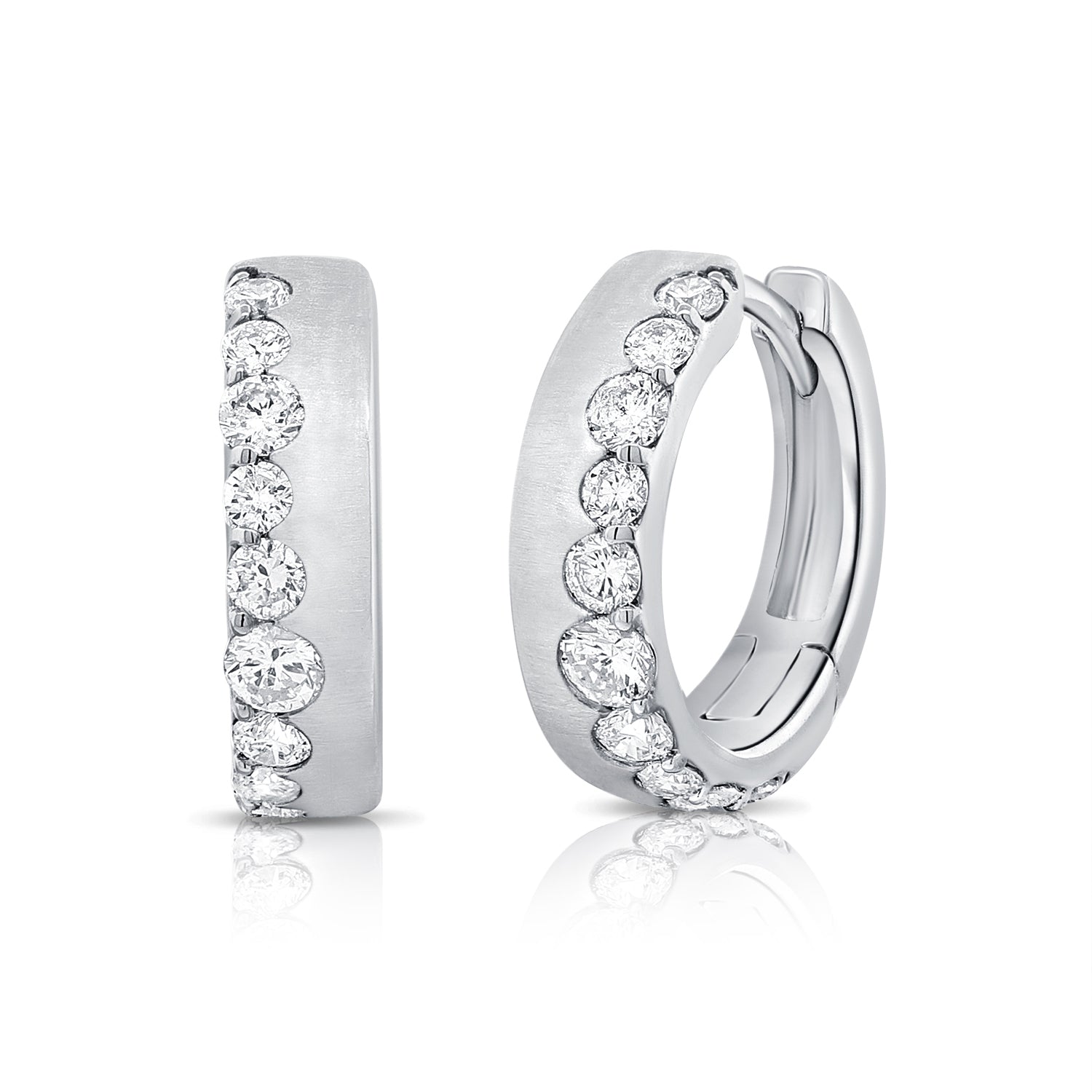 14K GOLD DIAMOND FLOATING HOOP EARRINGS