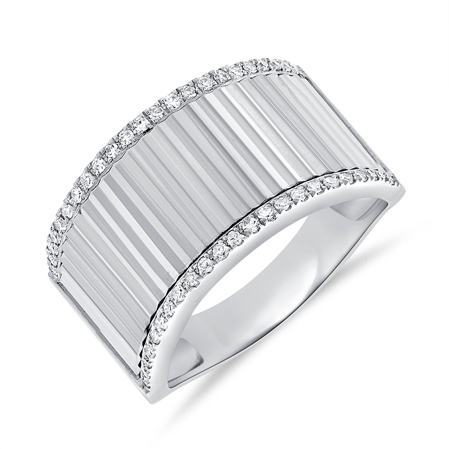 14K GOLD & DIAMOND FLUTED BAND - 0.17ct