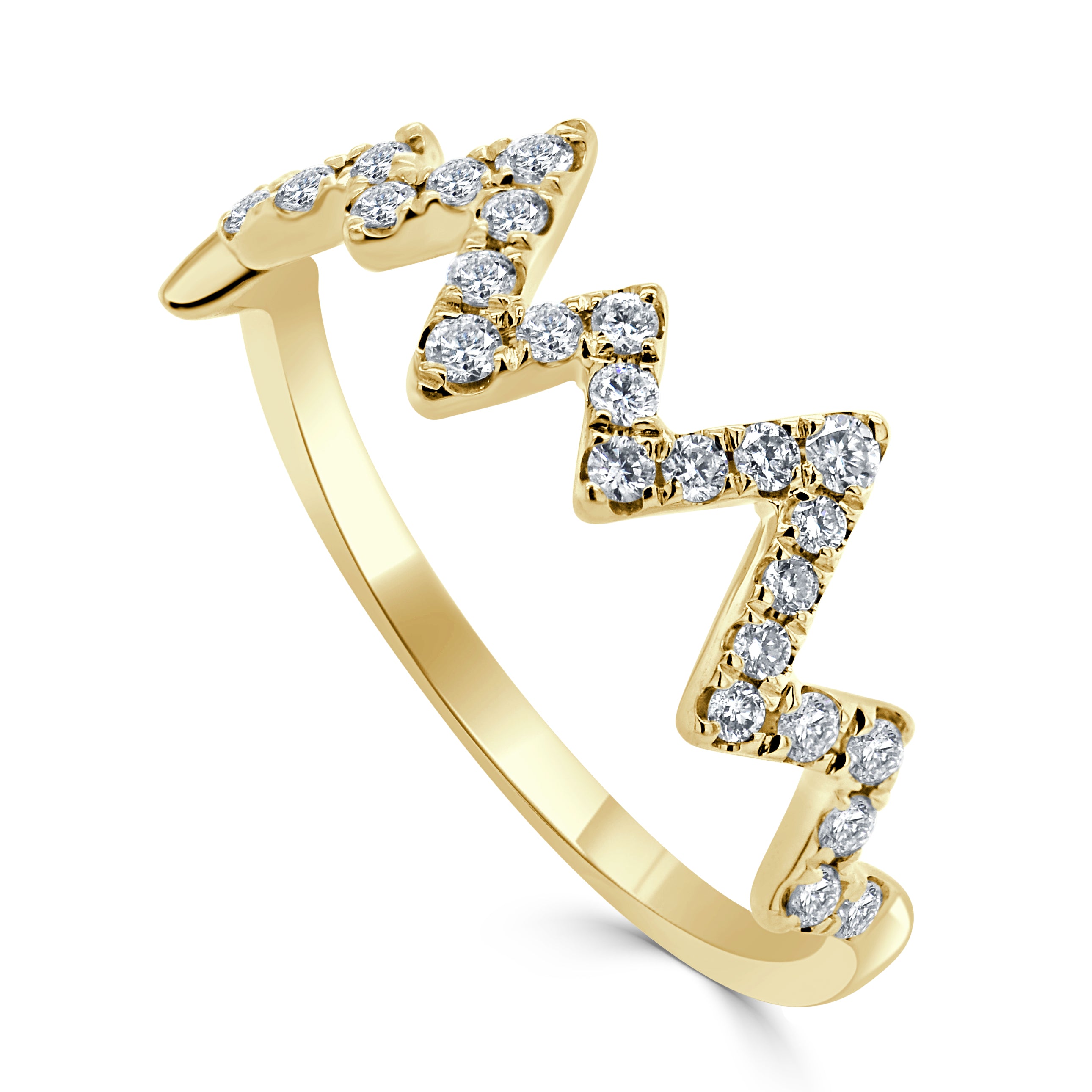 14k Gold & Diamond Heart Beat Zig-Zag Ring