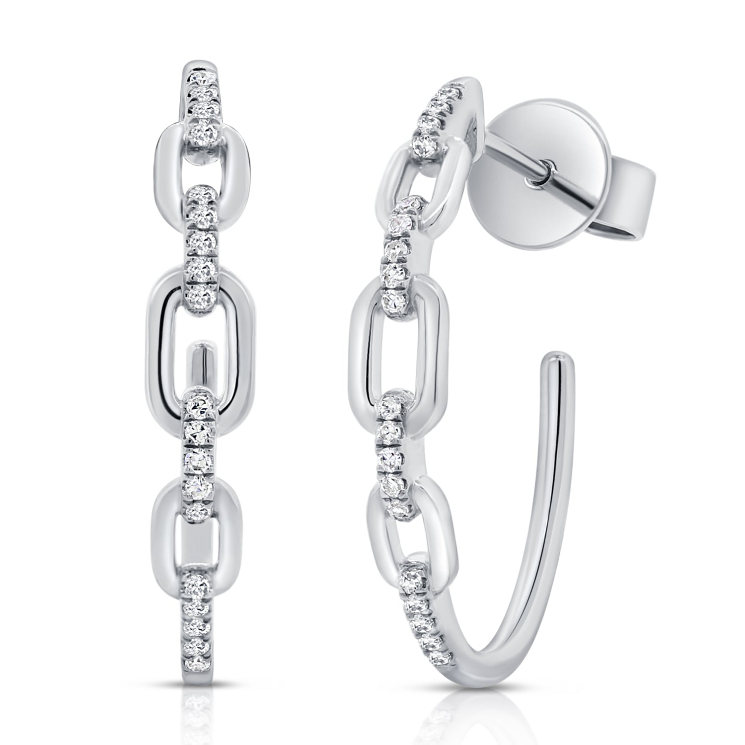 14K GOLD DIAMOND HOOP LINK EARRINGS