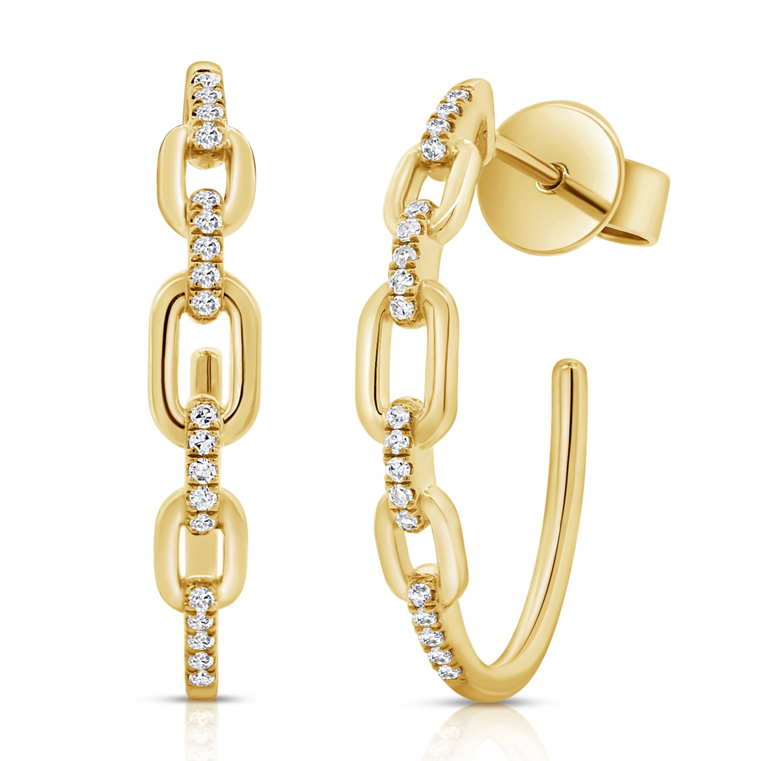 14K Gold Diamond Hoop Link Earrings - 0.13ct