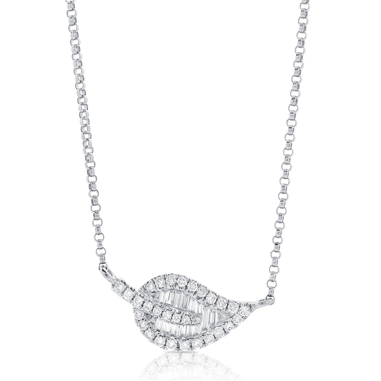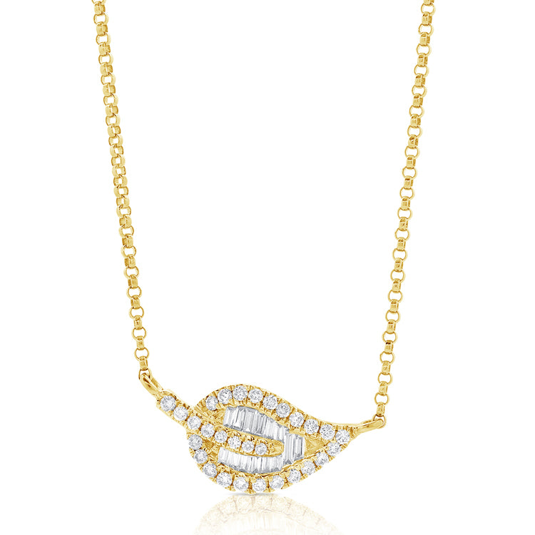 14K Gold & Baguette Diamond Leaf Necklace - 0.29ct