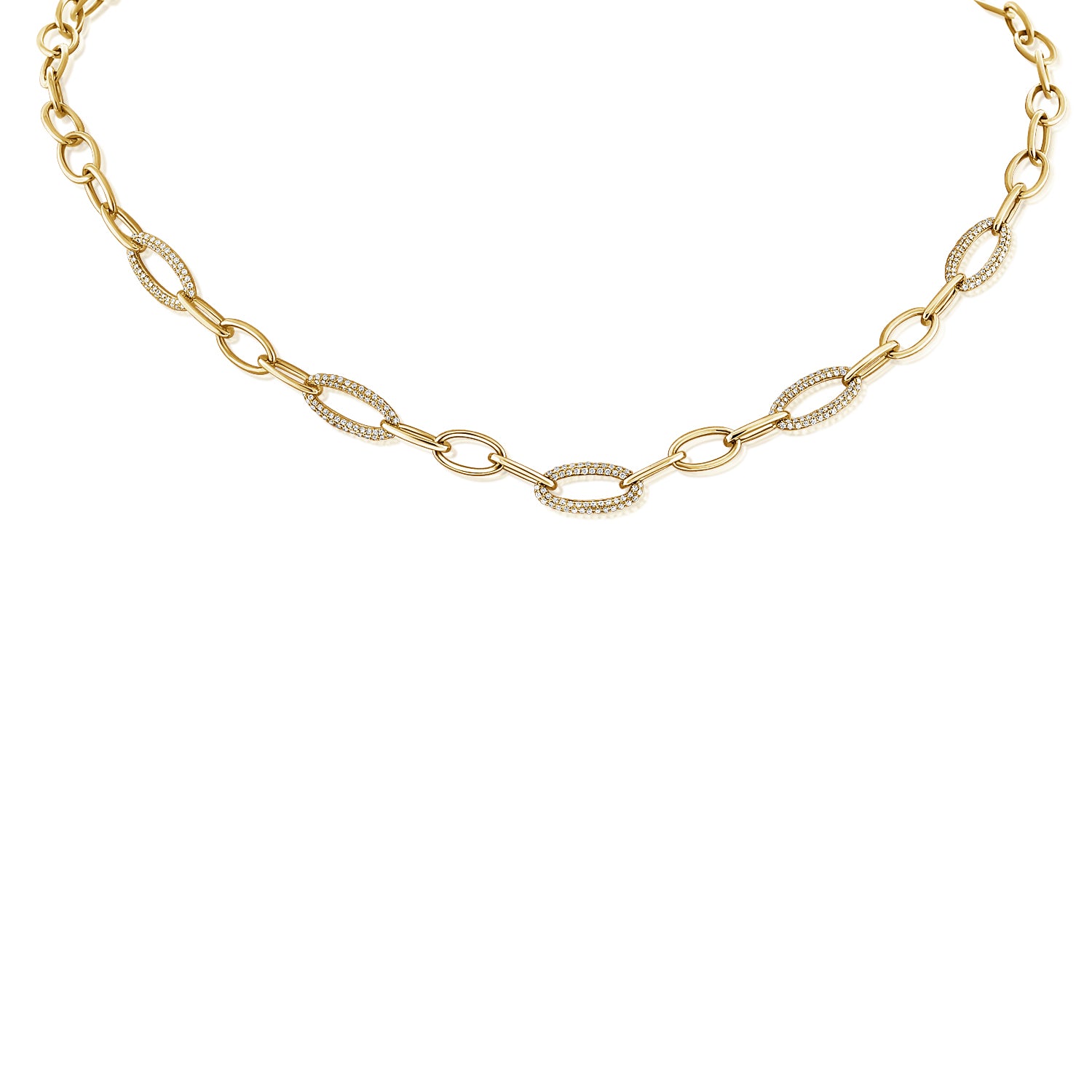 14K GOLD DIAMOND OVAL LINK NECKLACE