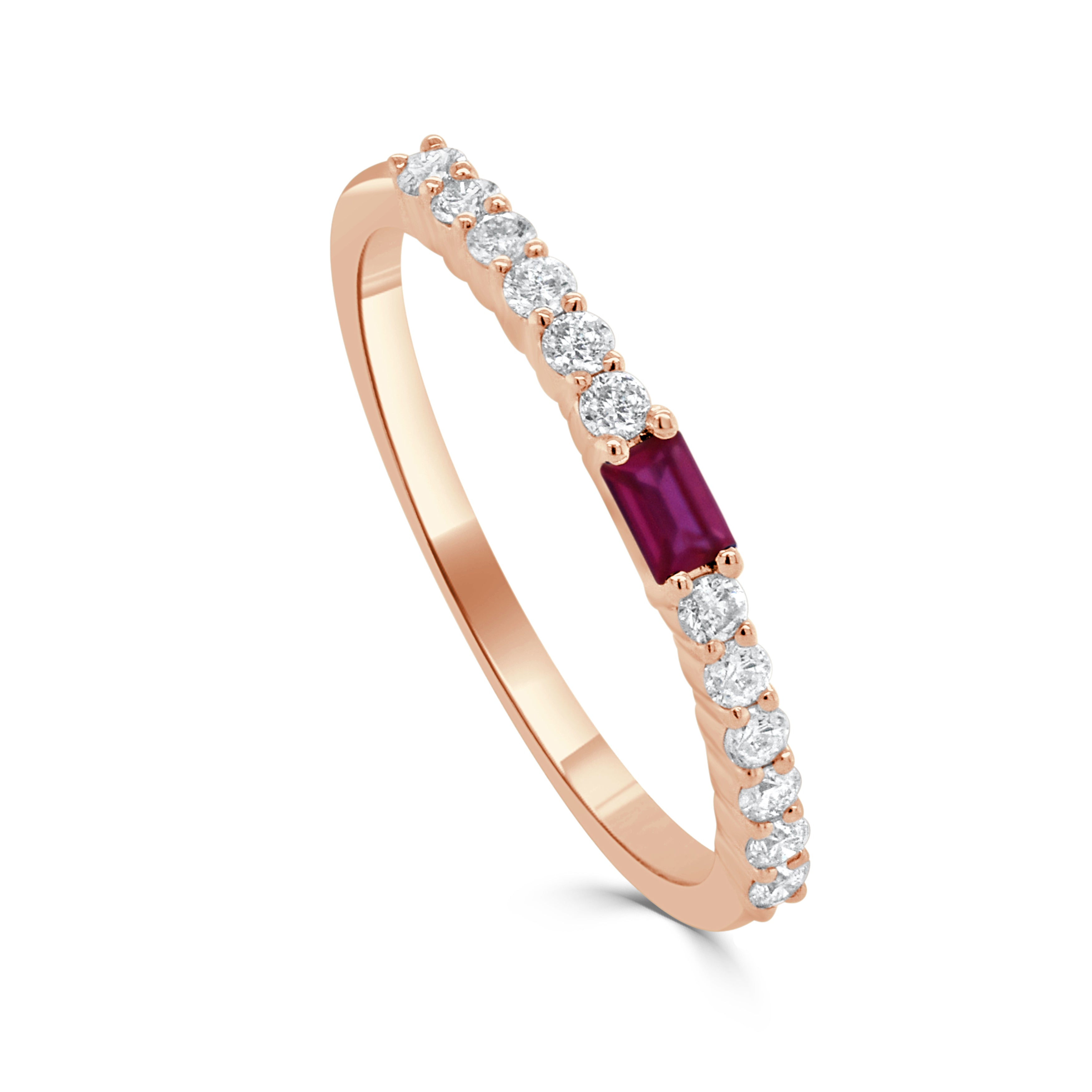 14K GOLD DIAMOND RUBY BAGUETTE RING