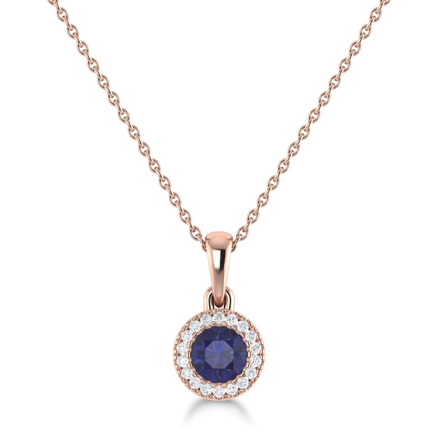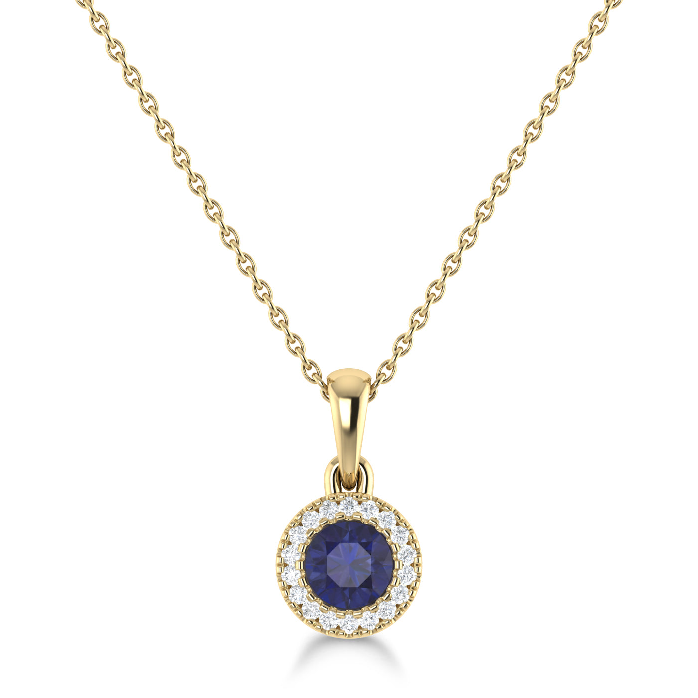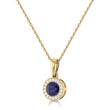 14K GOLD DIAMOND & SAPPHIRE CIRCLE PENDANT