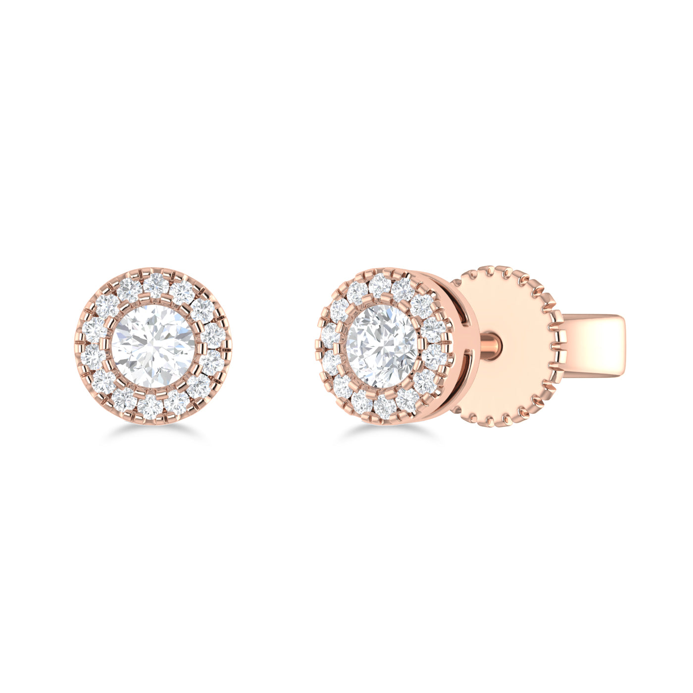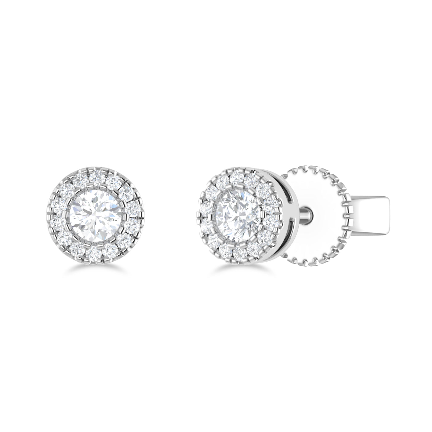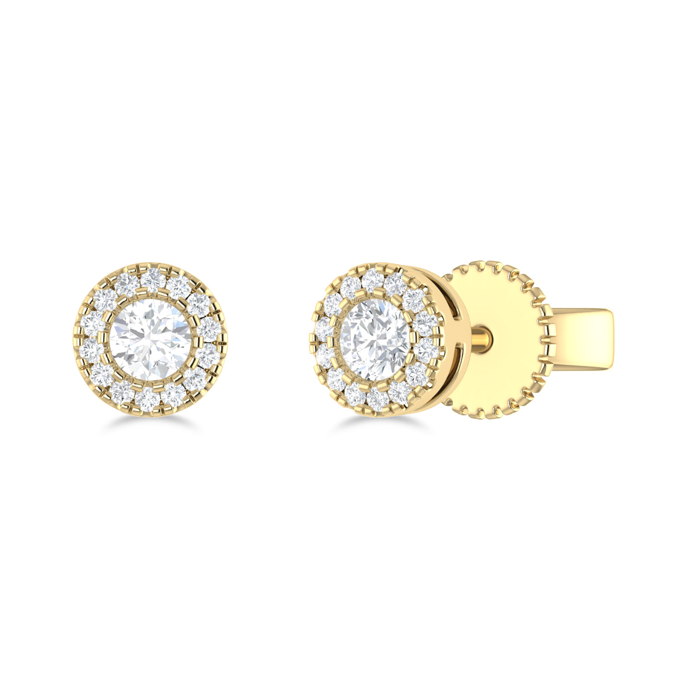 14K Gold Diamond & White Topaz Circle Studs - 0.04ct