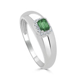 14K GOLD EMERALD-CUT EMERALD CENTER & DIAMOND BAND