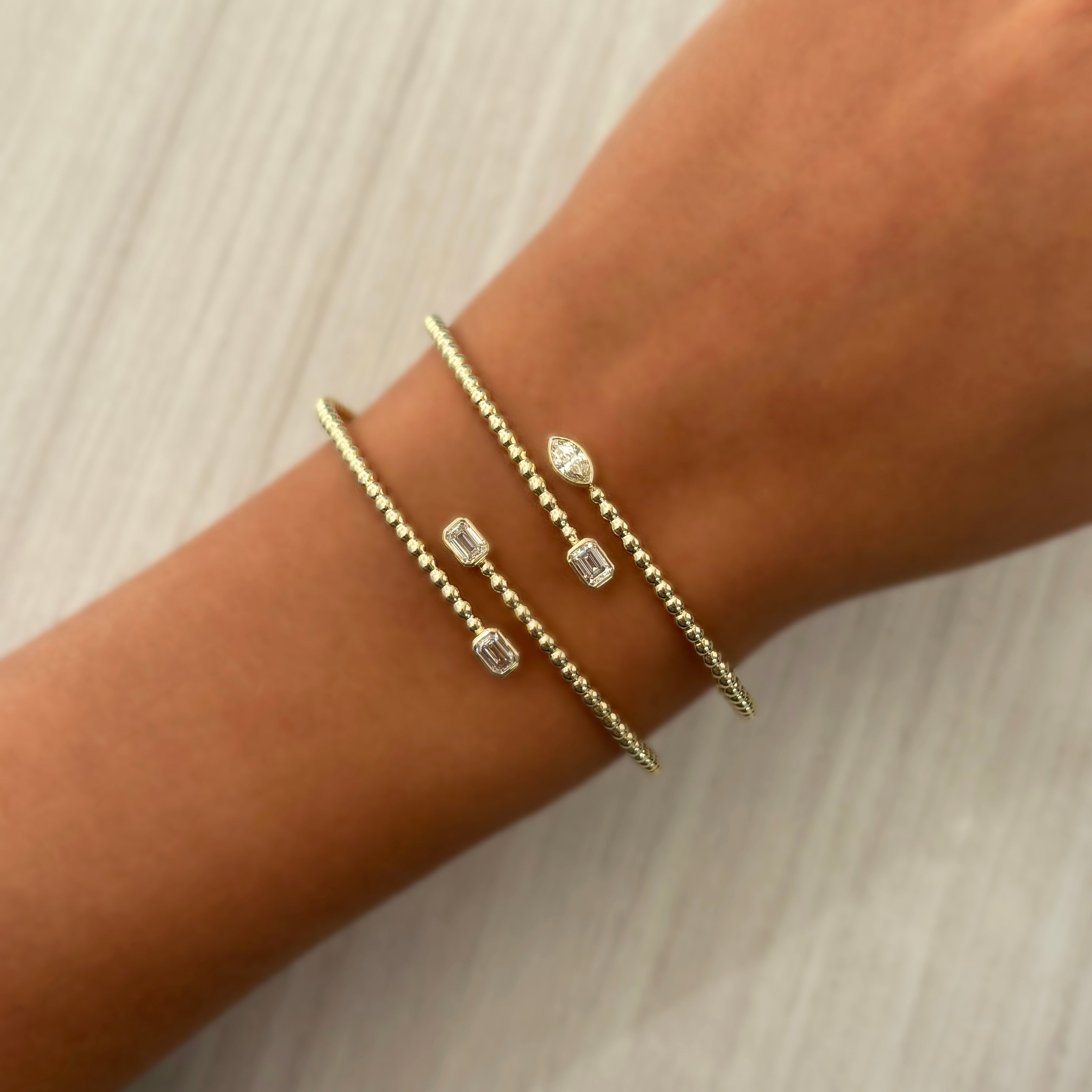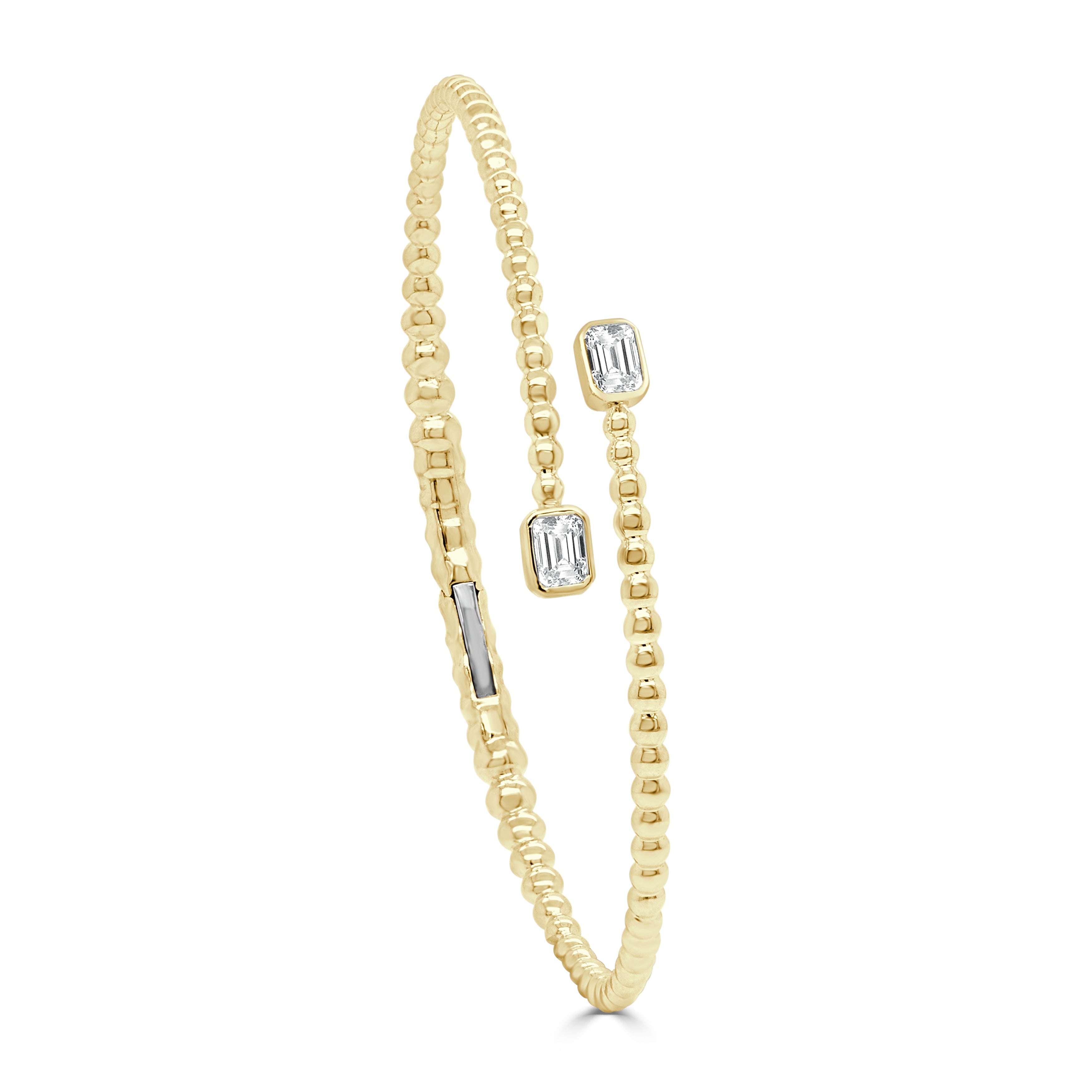 14K GOLD & EMERALD-CUT DIAMOND BANGLE