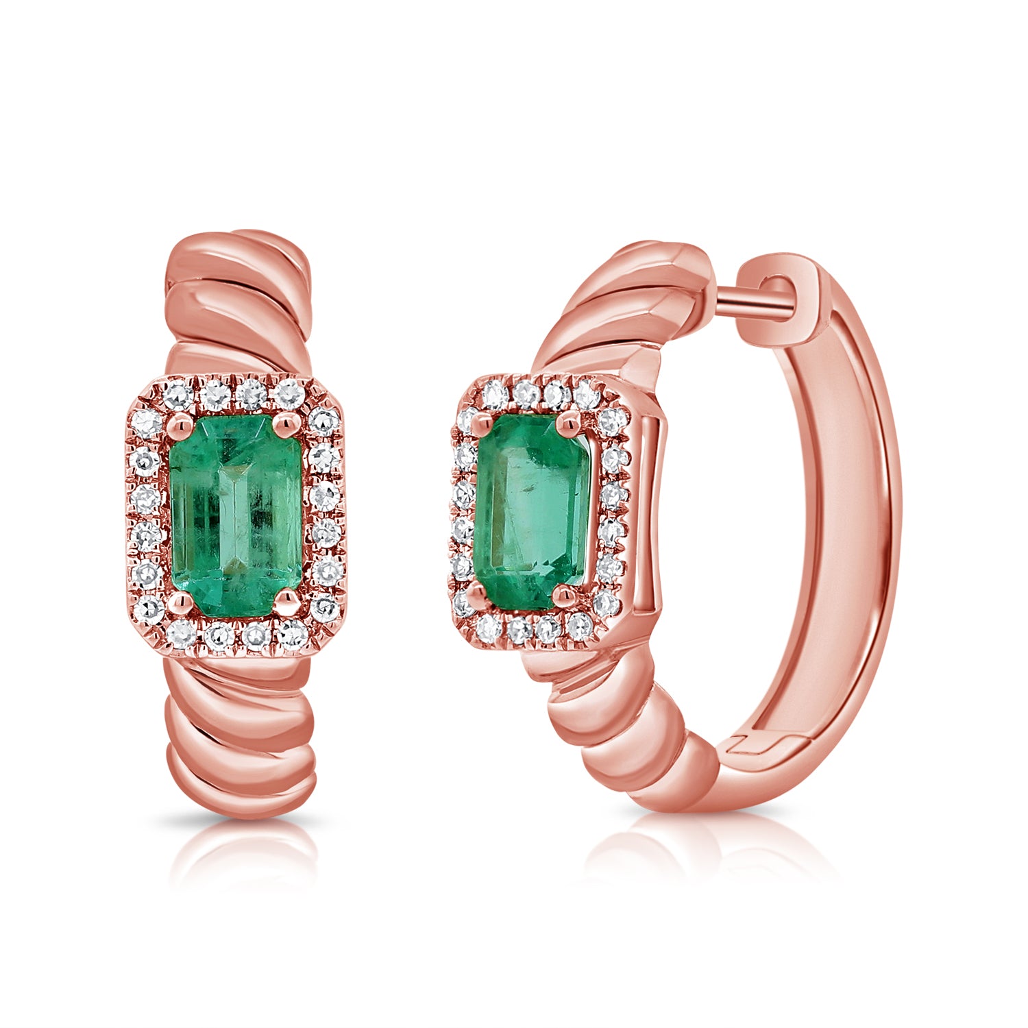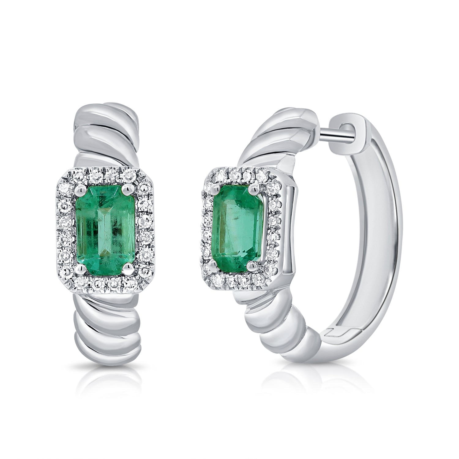 14K GOLD EMERALD & DIAMOND HUGGIE EARRINGS
