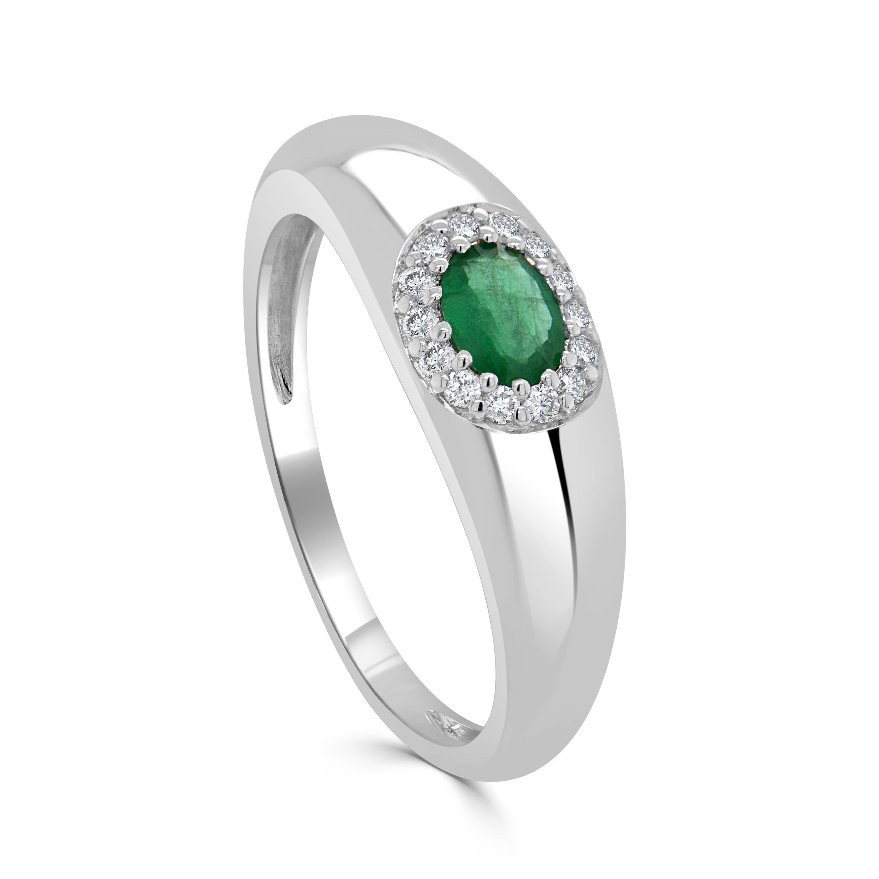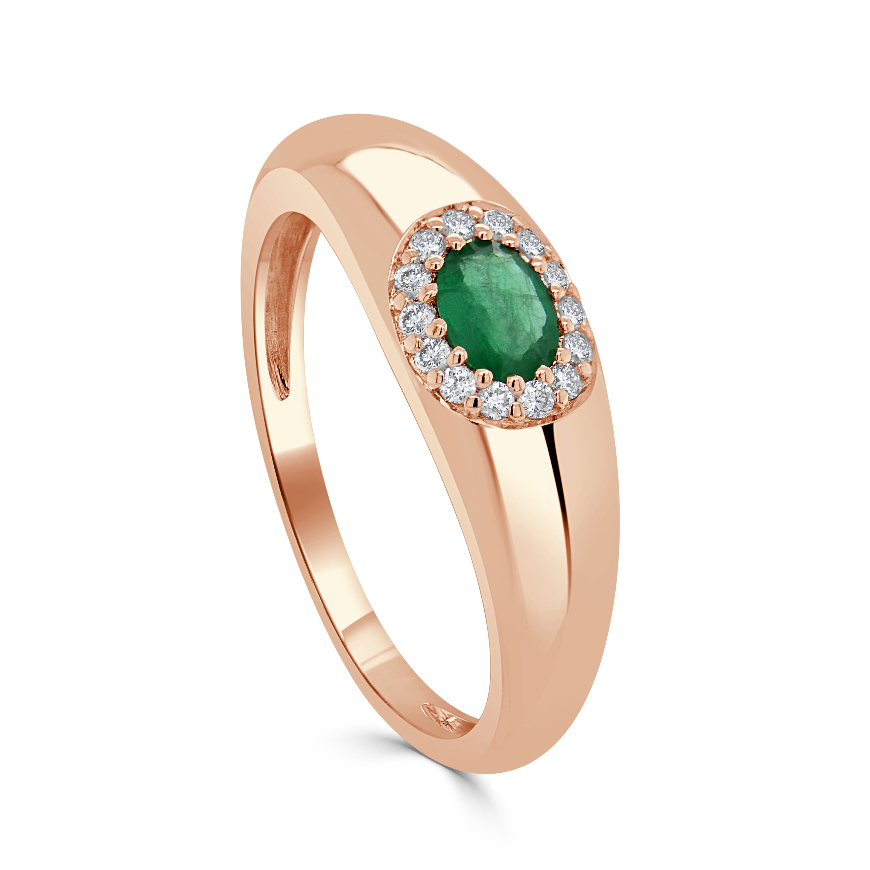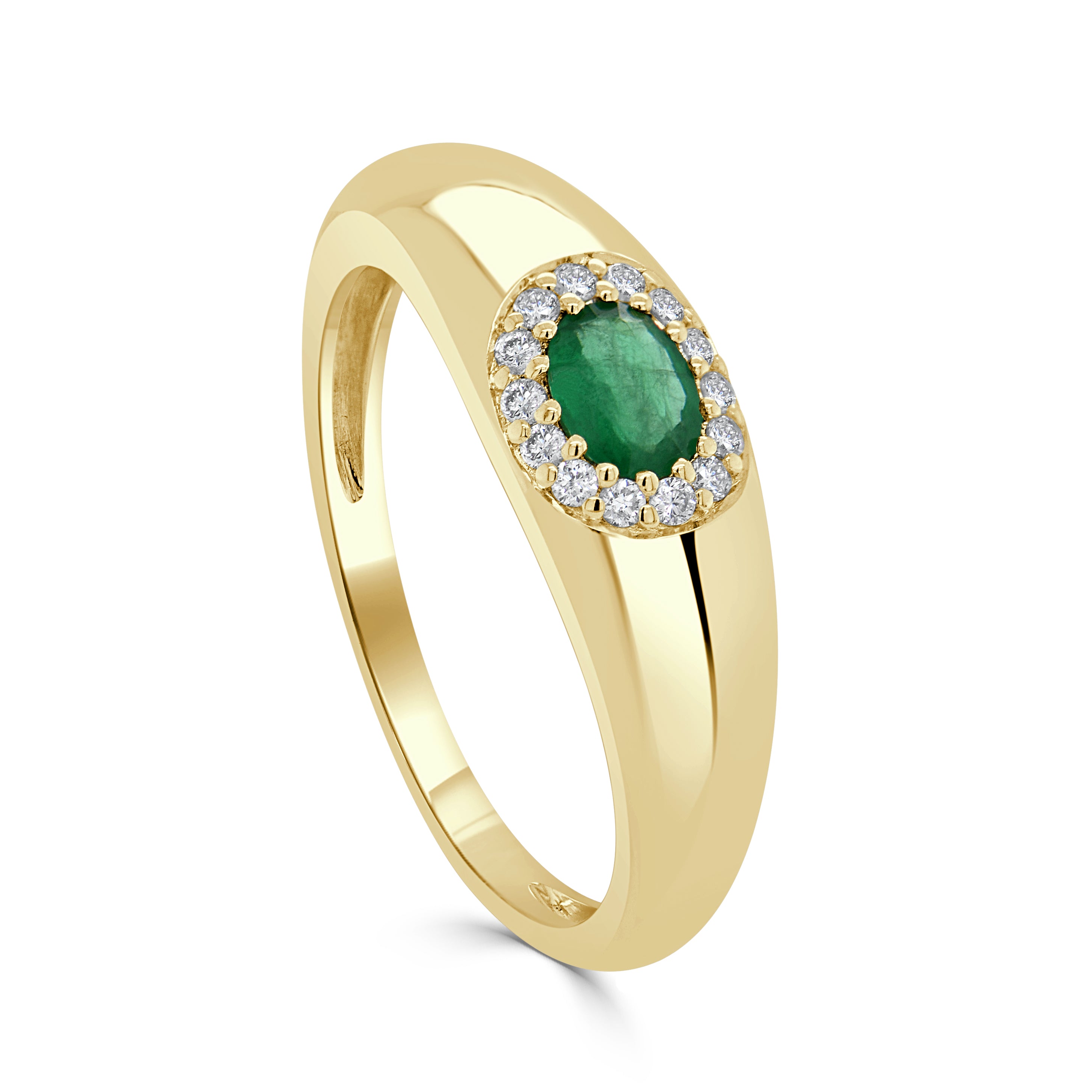 14K GOLD EMERALD OVAL CENTER & DIAMOND RING