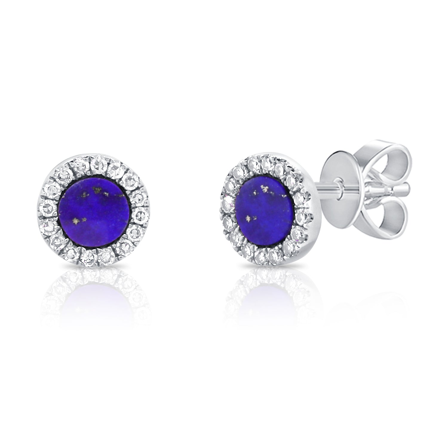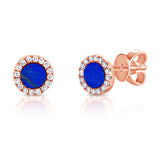 14K Gold Lapis & Diamond Small Disc Stud Earrings