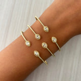 14K Gold Marquise & Pear Shape Diamond Open Bangle - 0.38ct