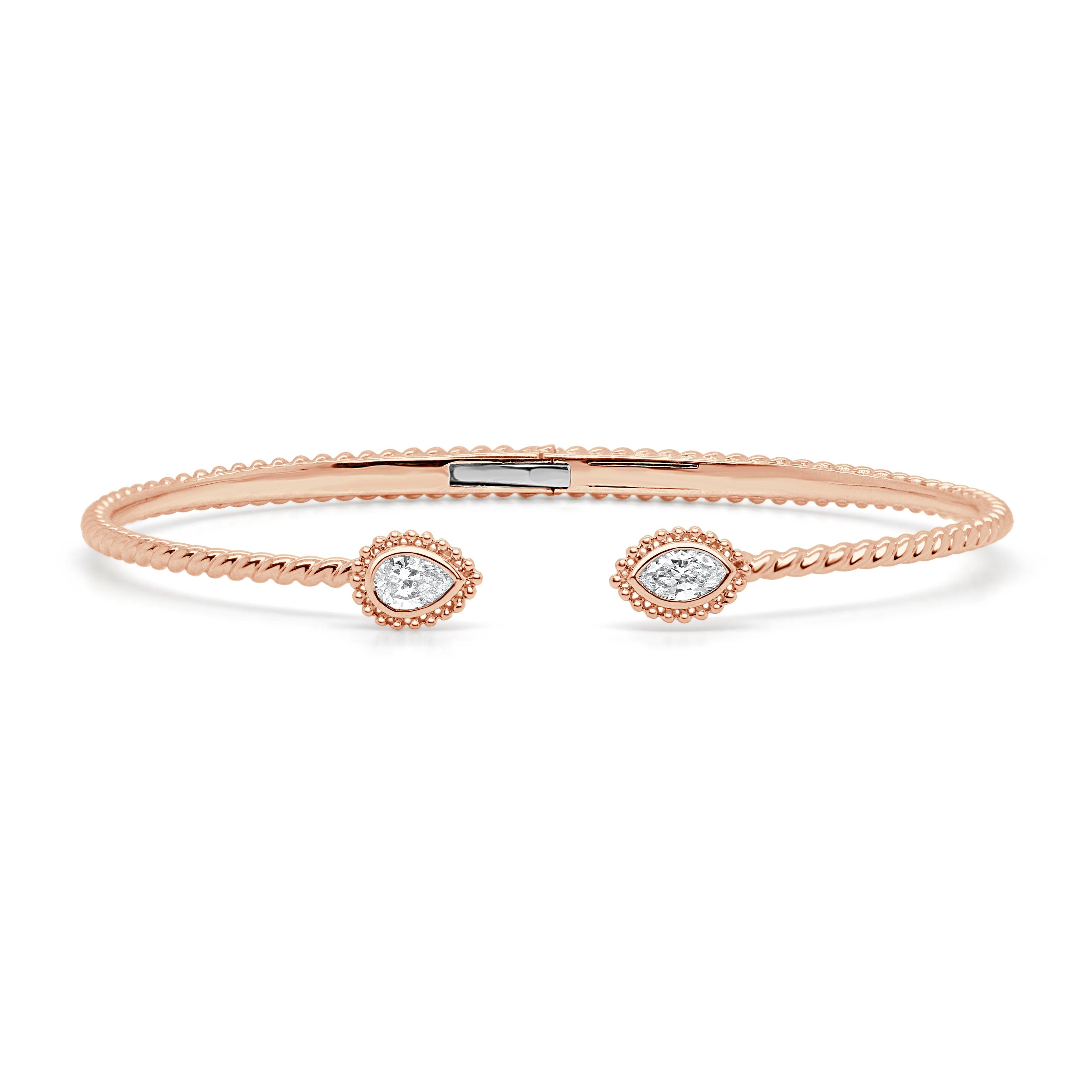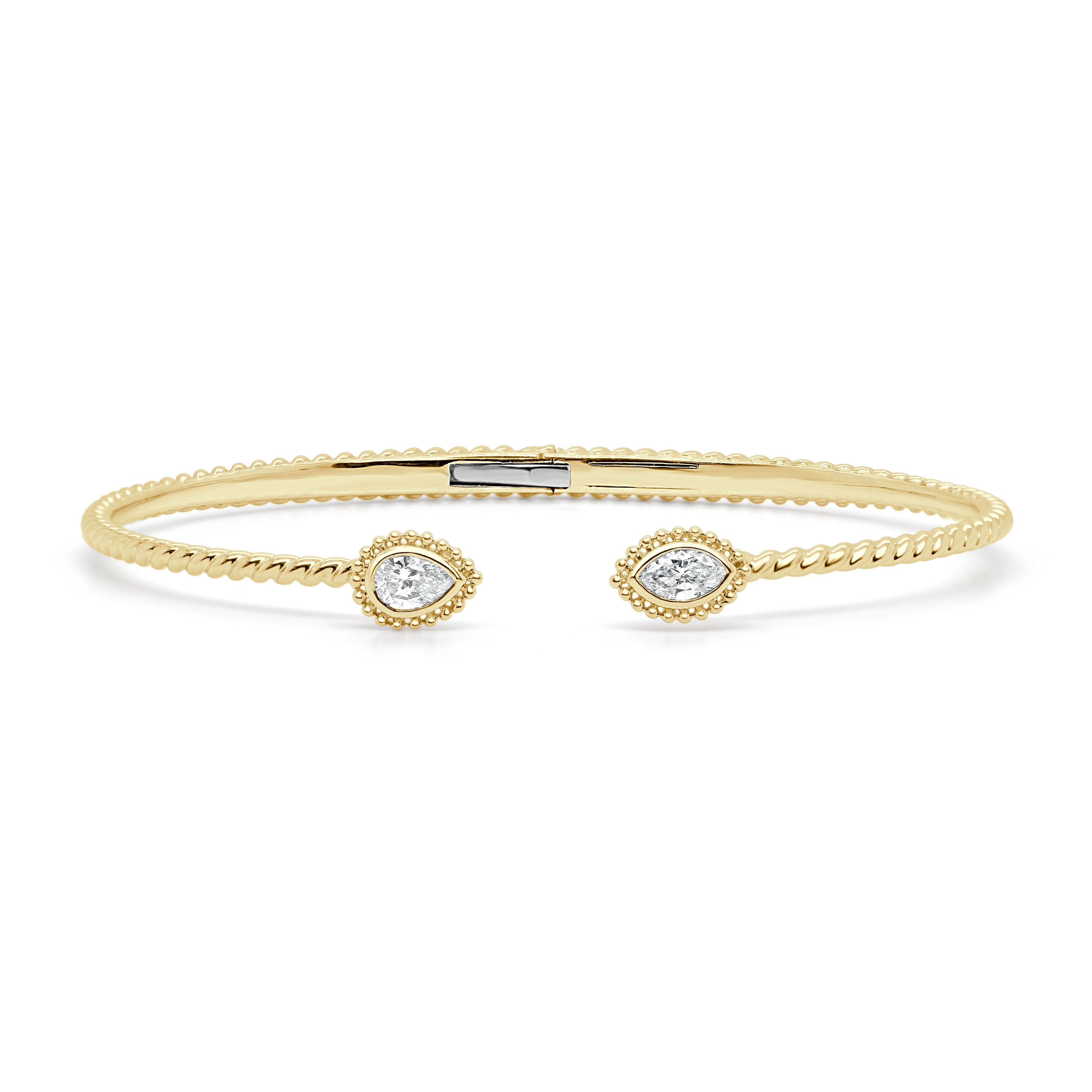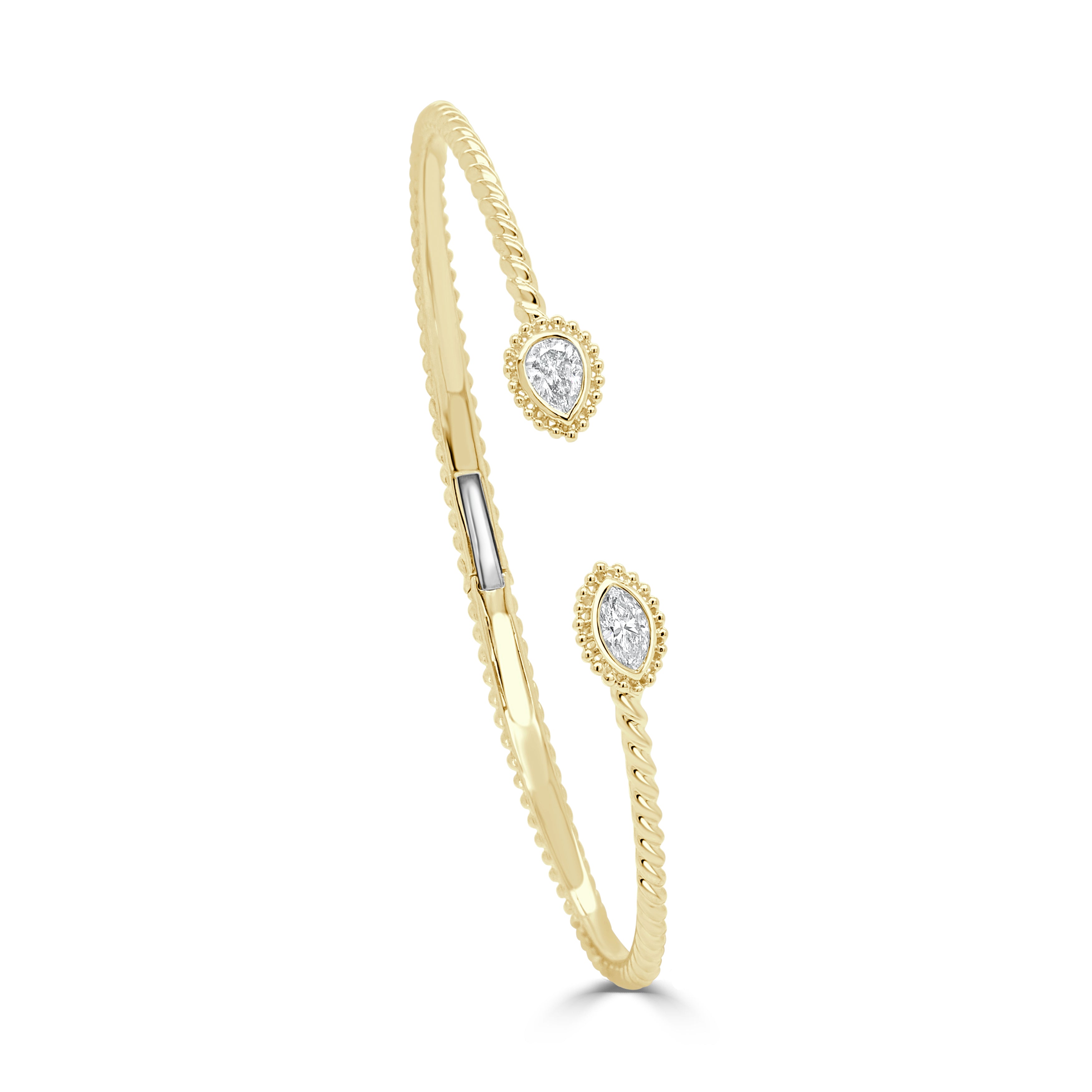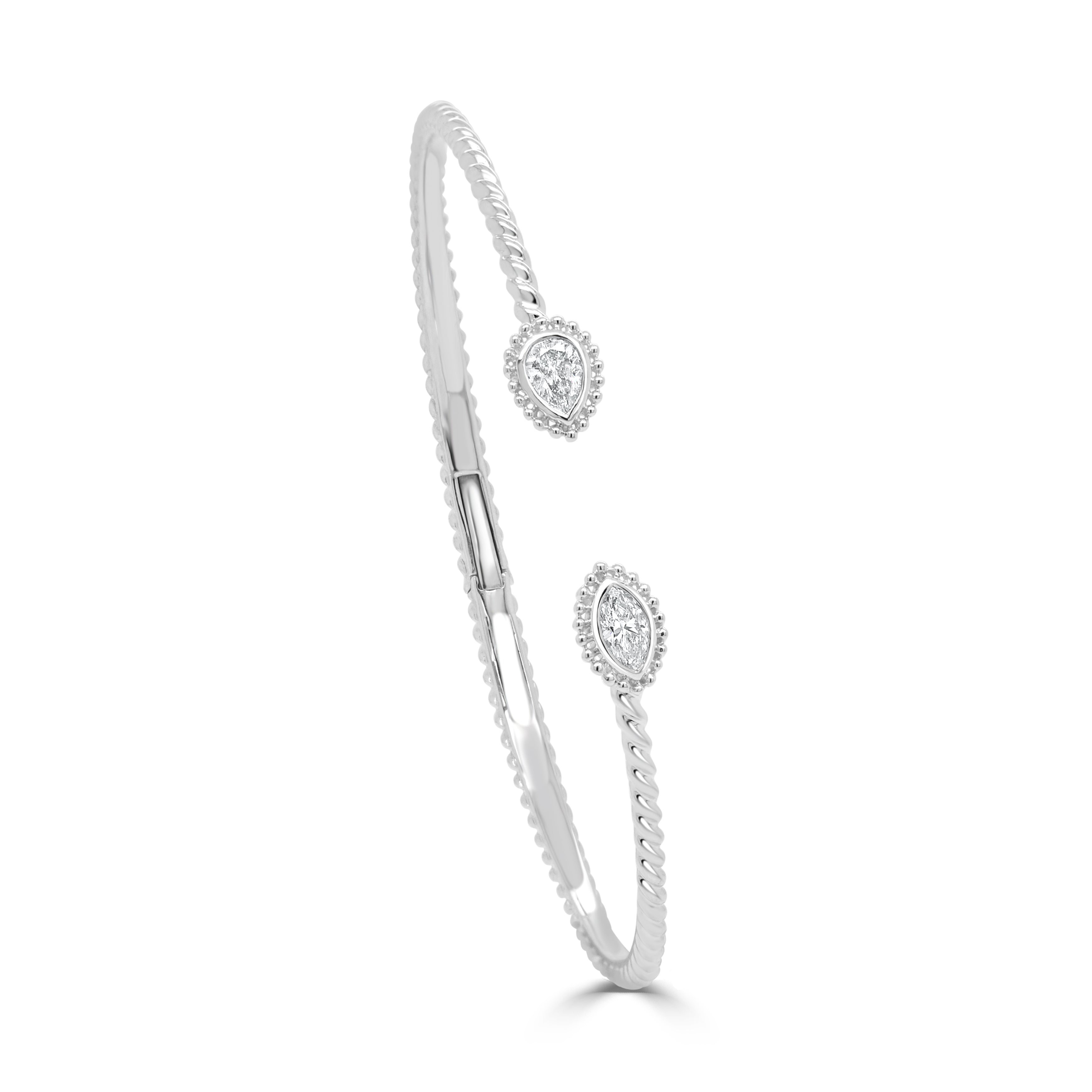 14K GOLD MARQUISE & PEAR SHAPE DIAMOND OPEN BANGLE