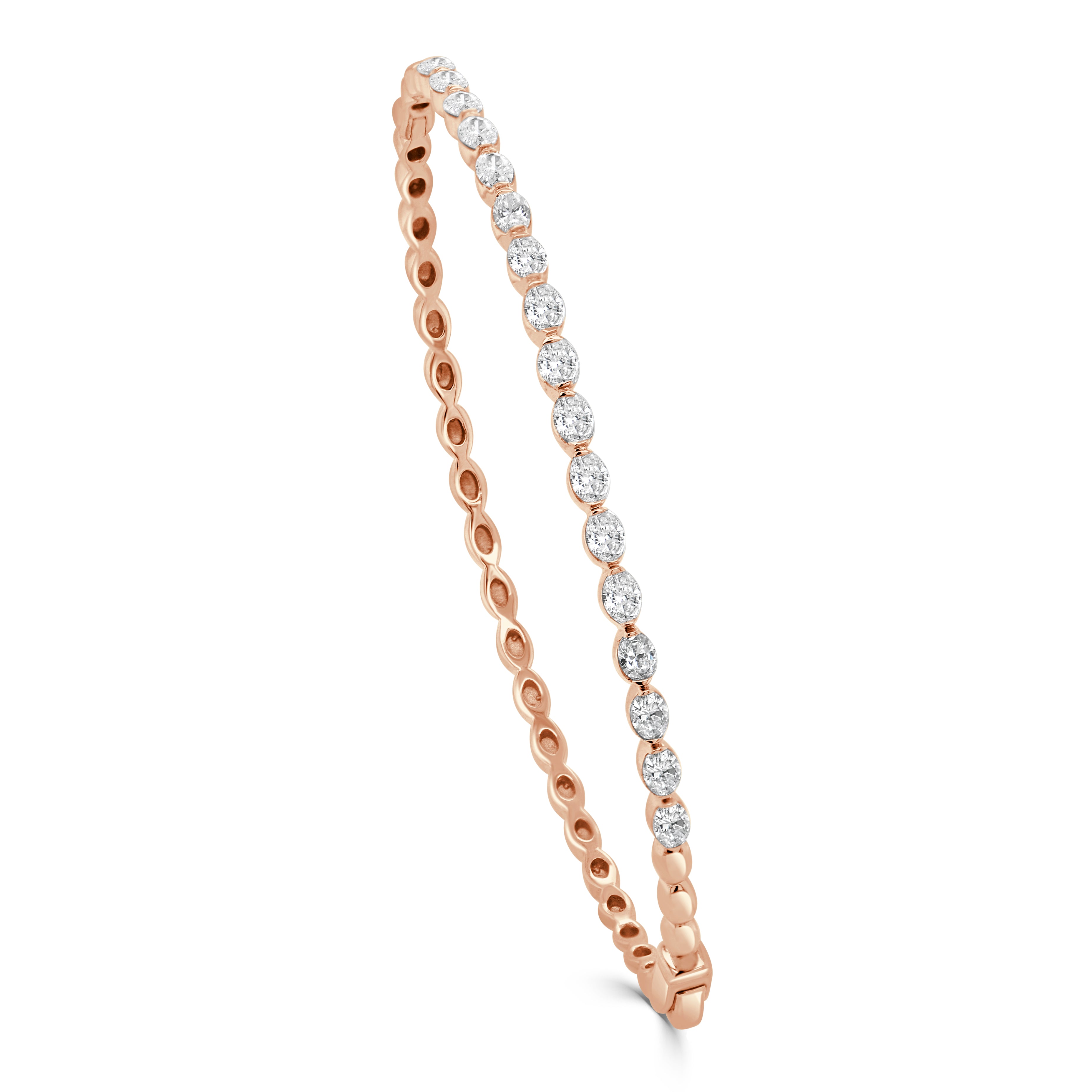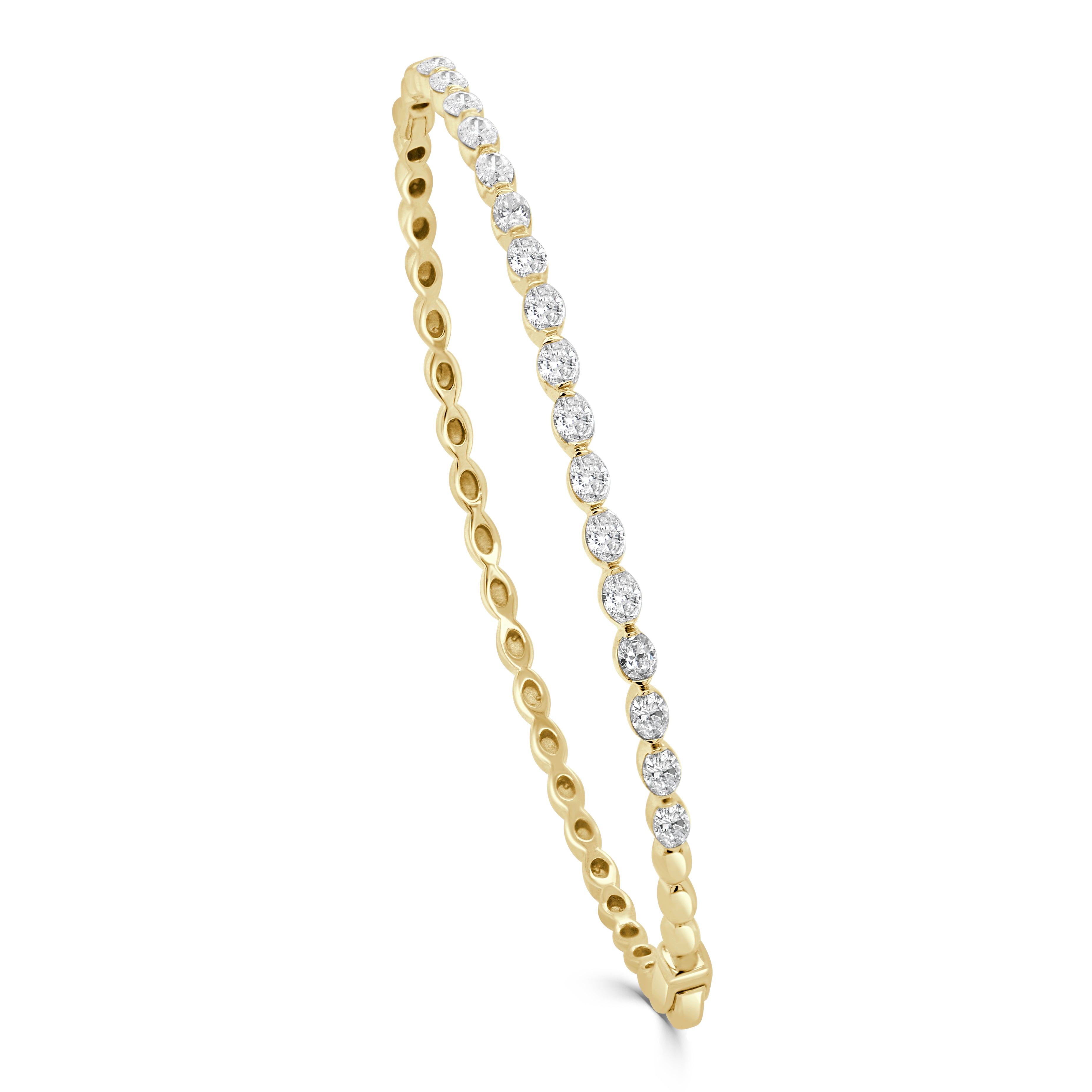 14K Gold & Oval Diamond Bangle Bracelet - 1.30 ct.