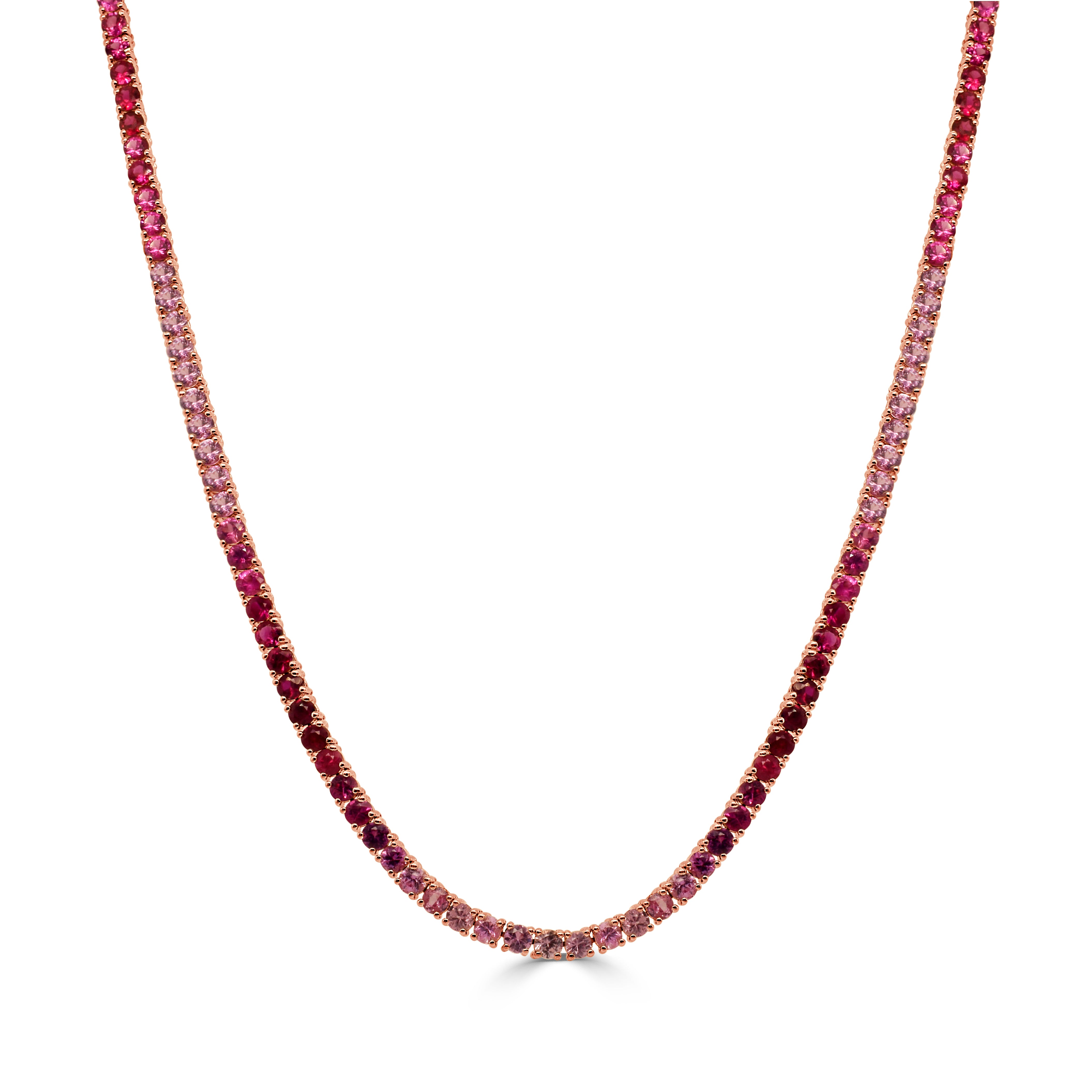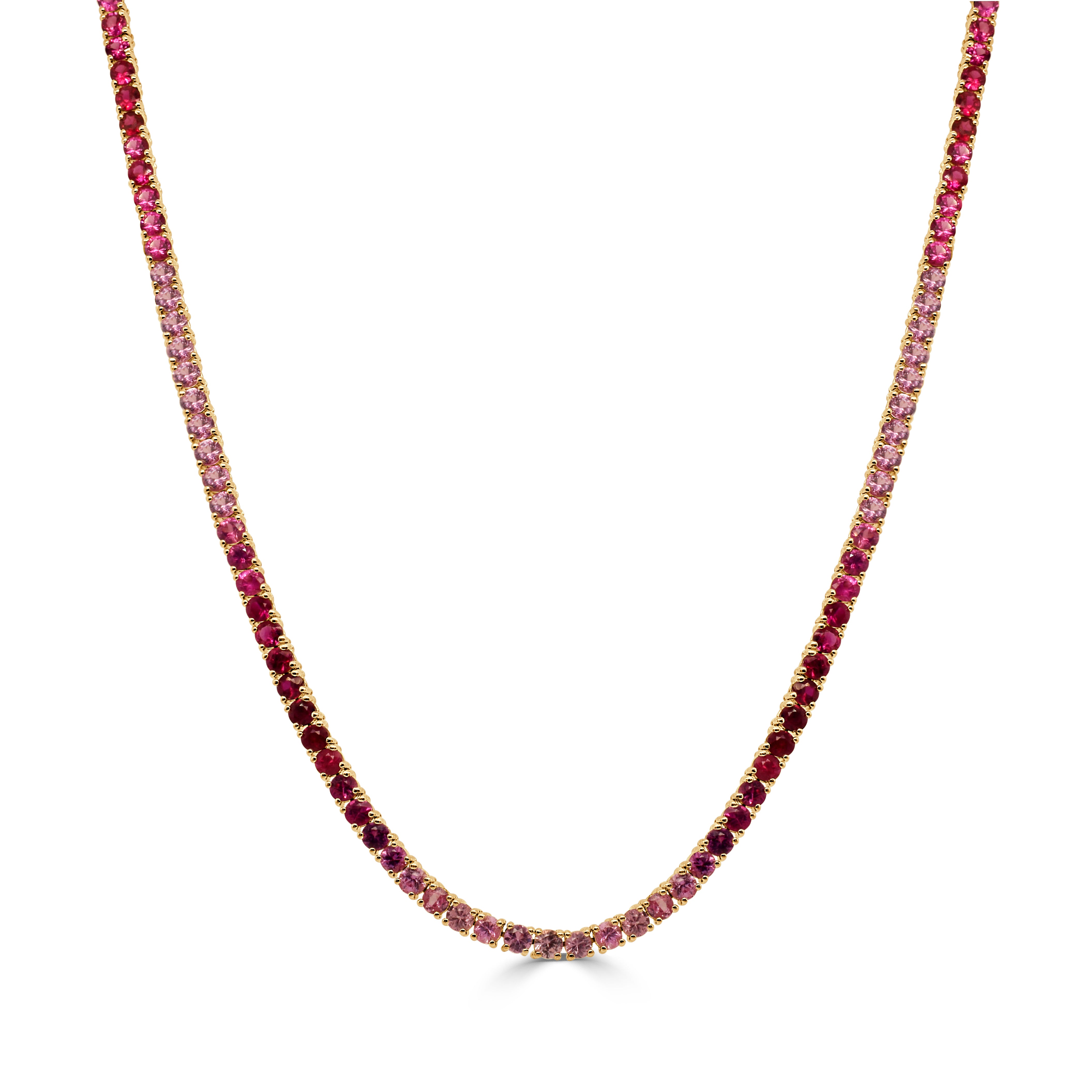 14K GOLD & PINK SAPPHIRE OMBRÉ TENNIS NECKLACE