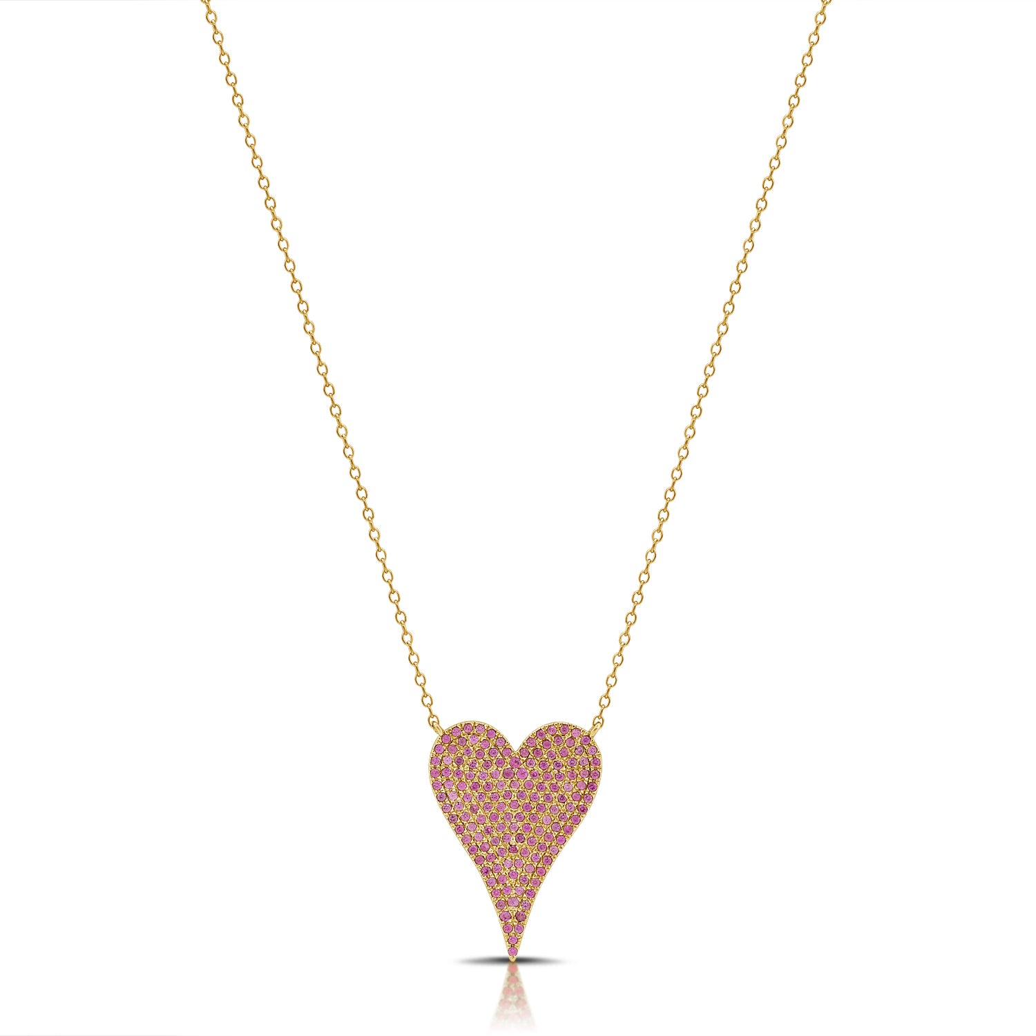 14K GOLD PINK SAPPHIRE PAVE HEART NECKLACE