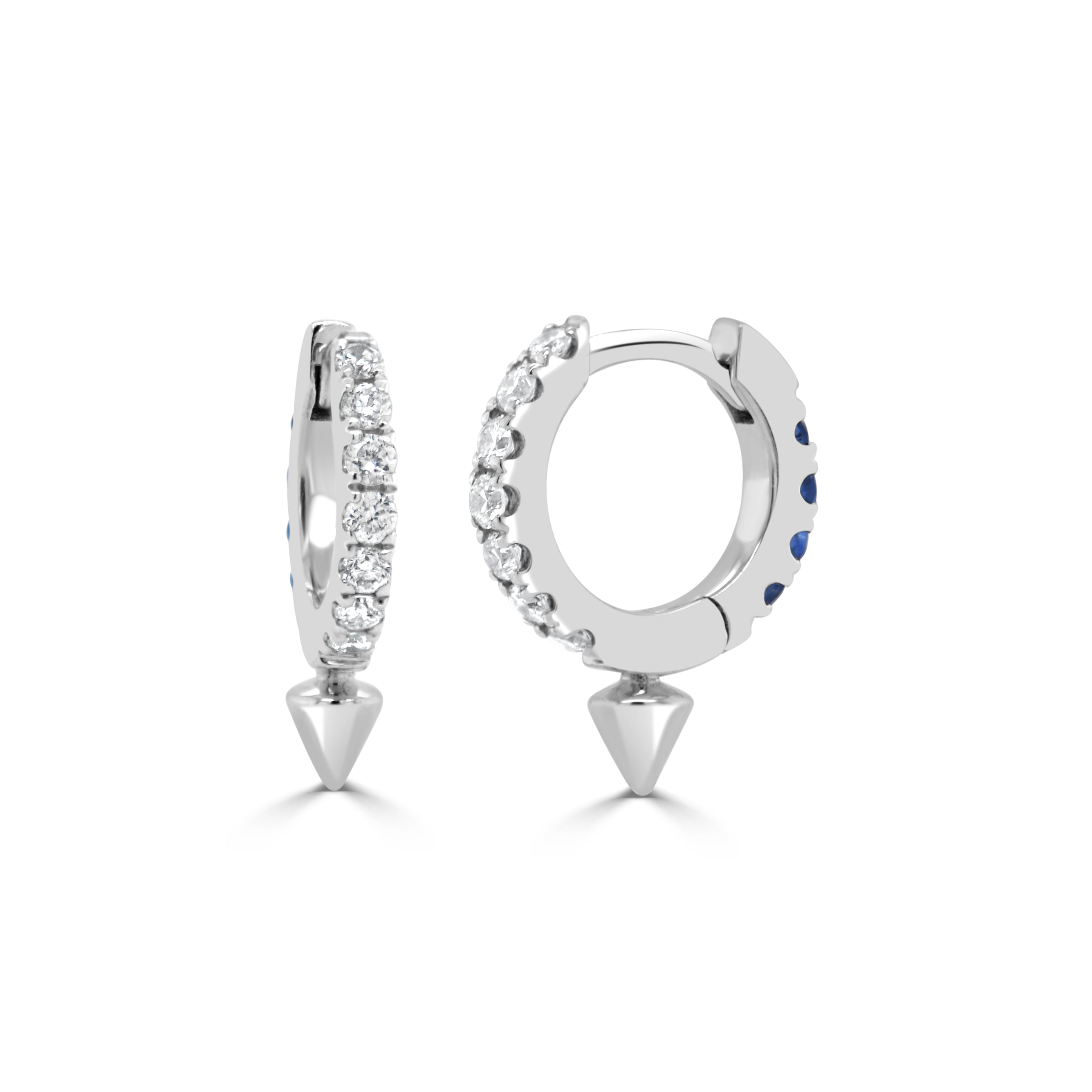 14K GOLD POINTED DIAMOND & SAPPHIRE HUGGIE