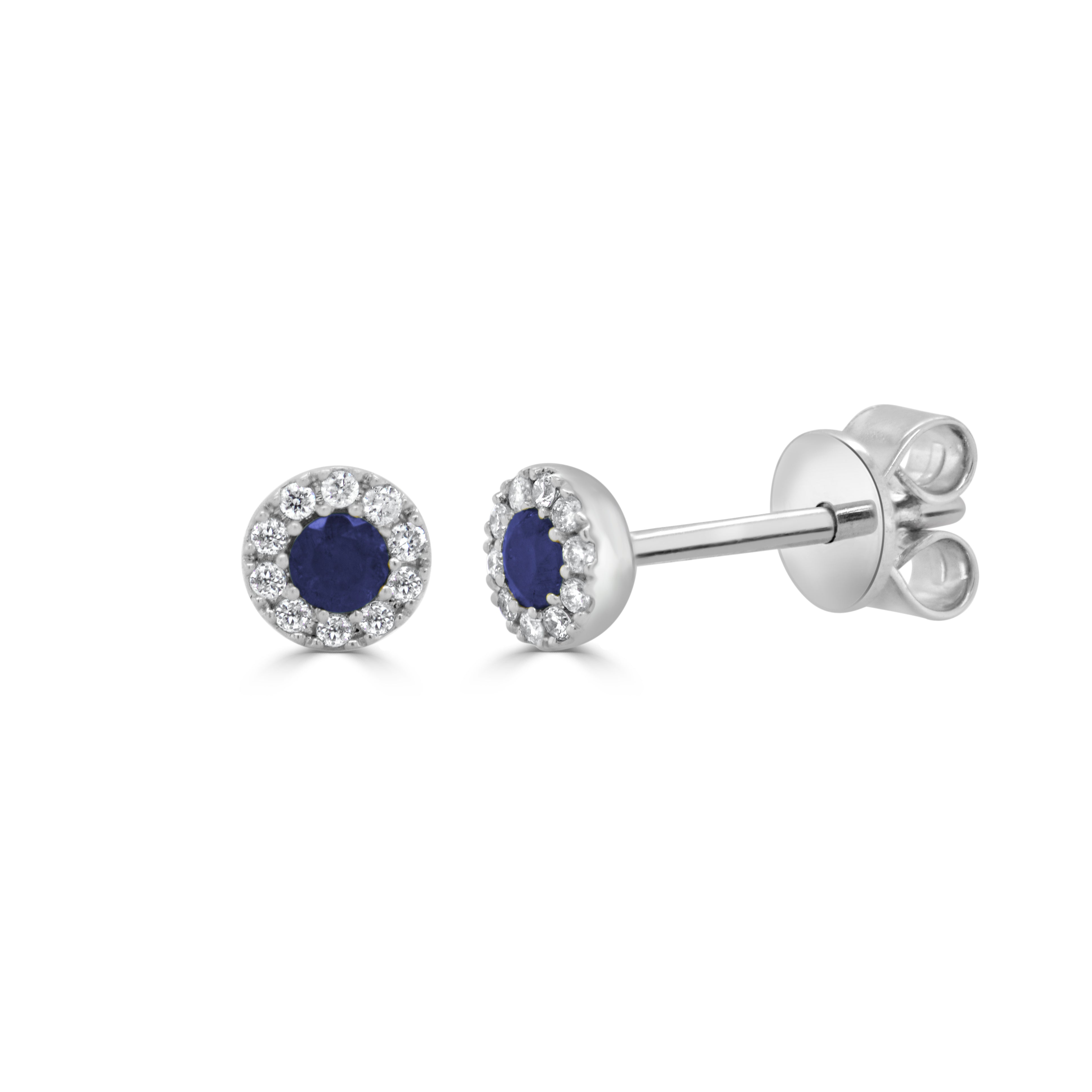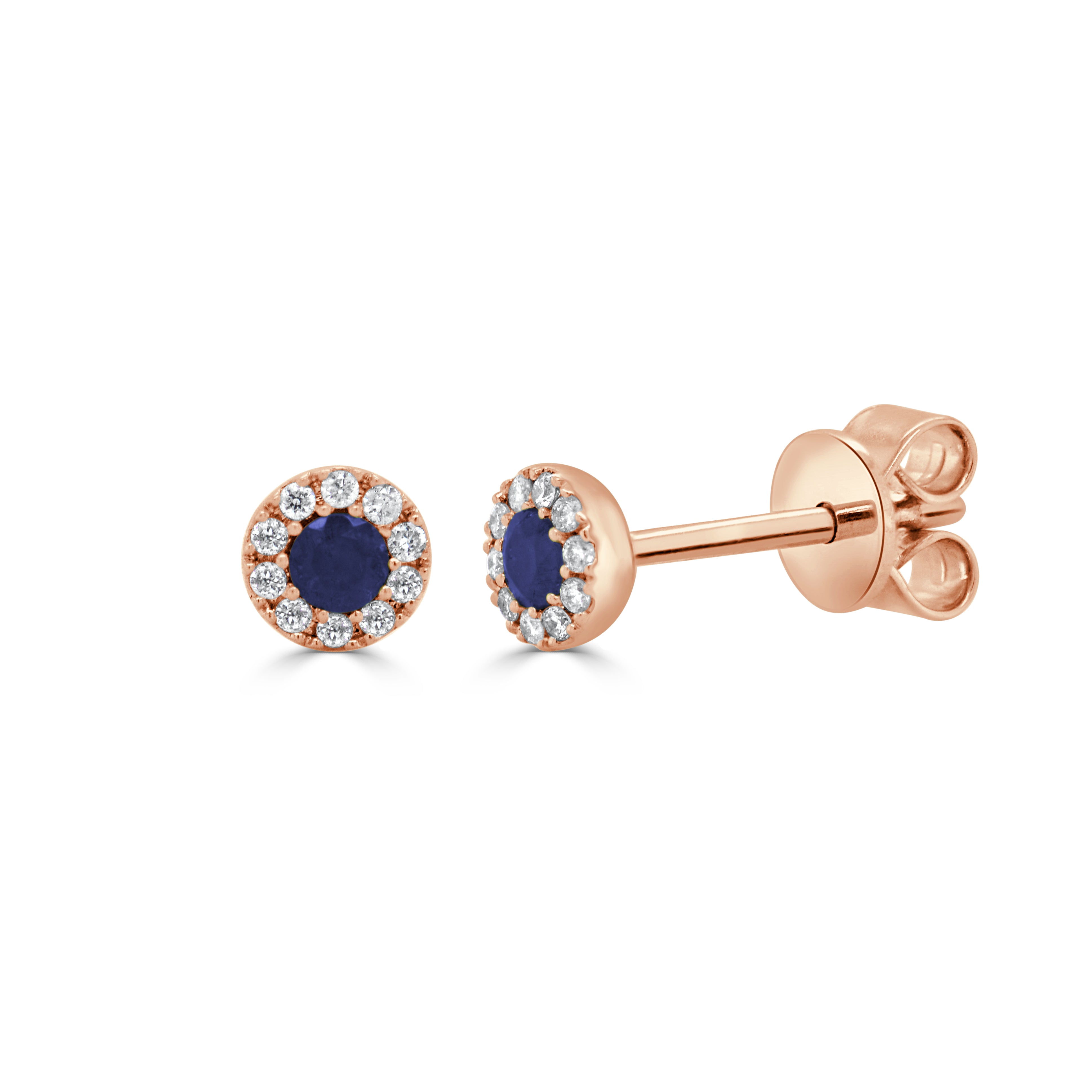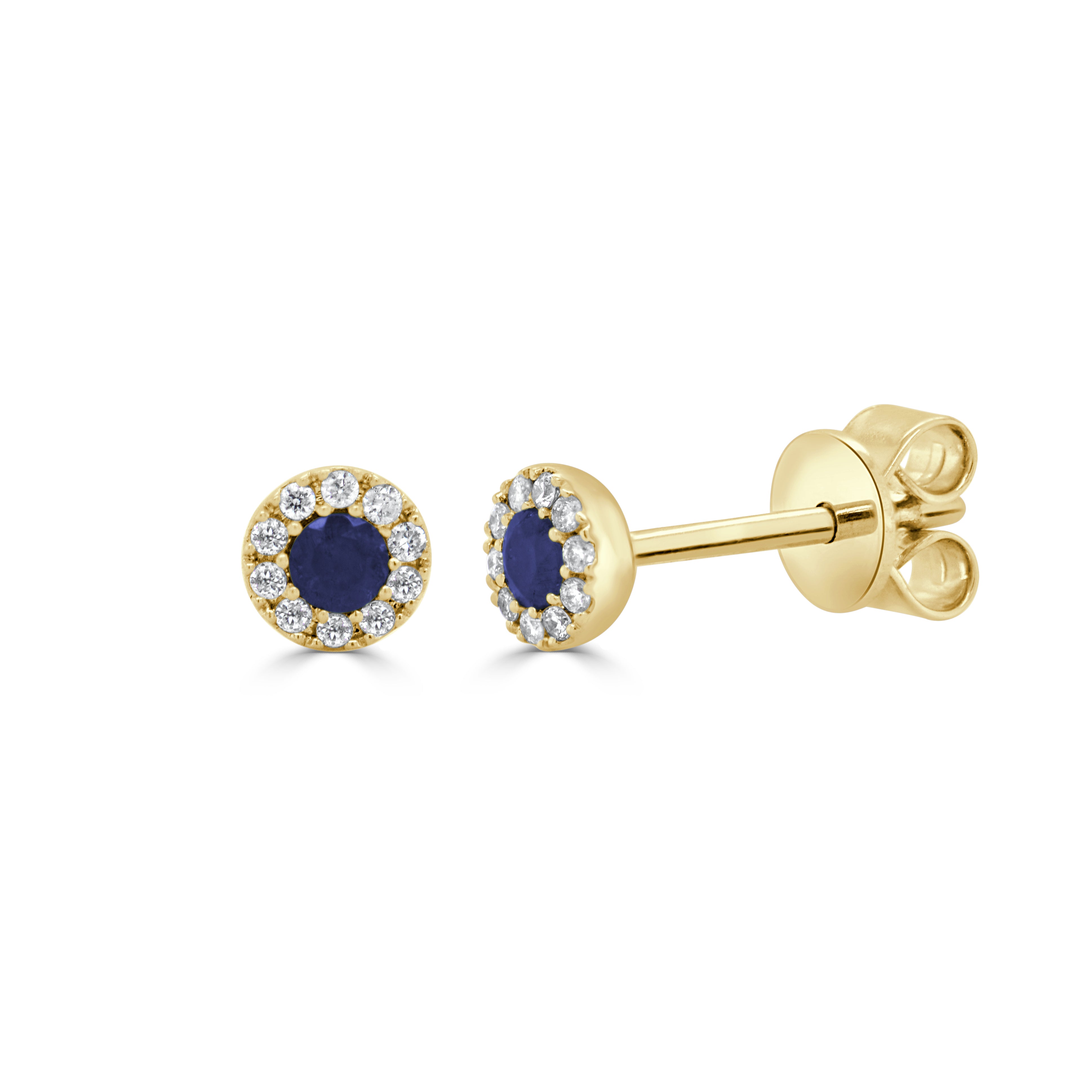 14K GOLD SAPPHIRE & DIAMOND ROUND TINY STUD EARRINGS