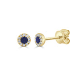 14K Gold Sapphire & Diamond Round Stud Earrings
