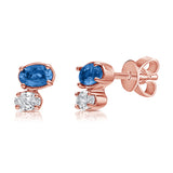 14K Gold Sapphire & Diamond Tiny Stud Earrings