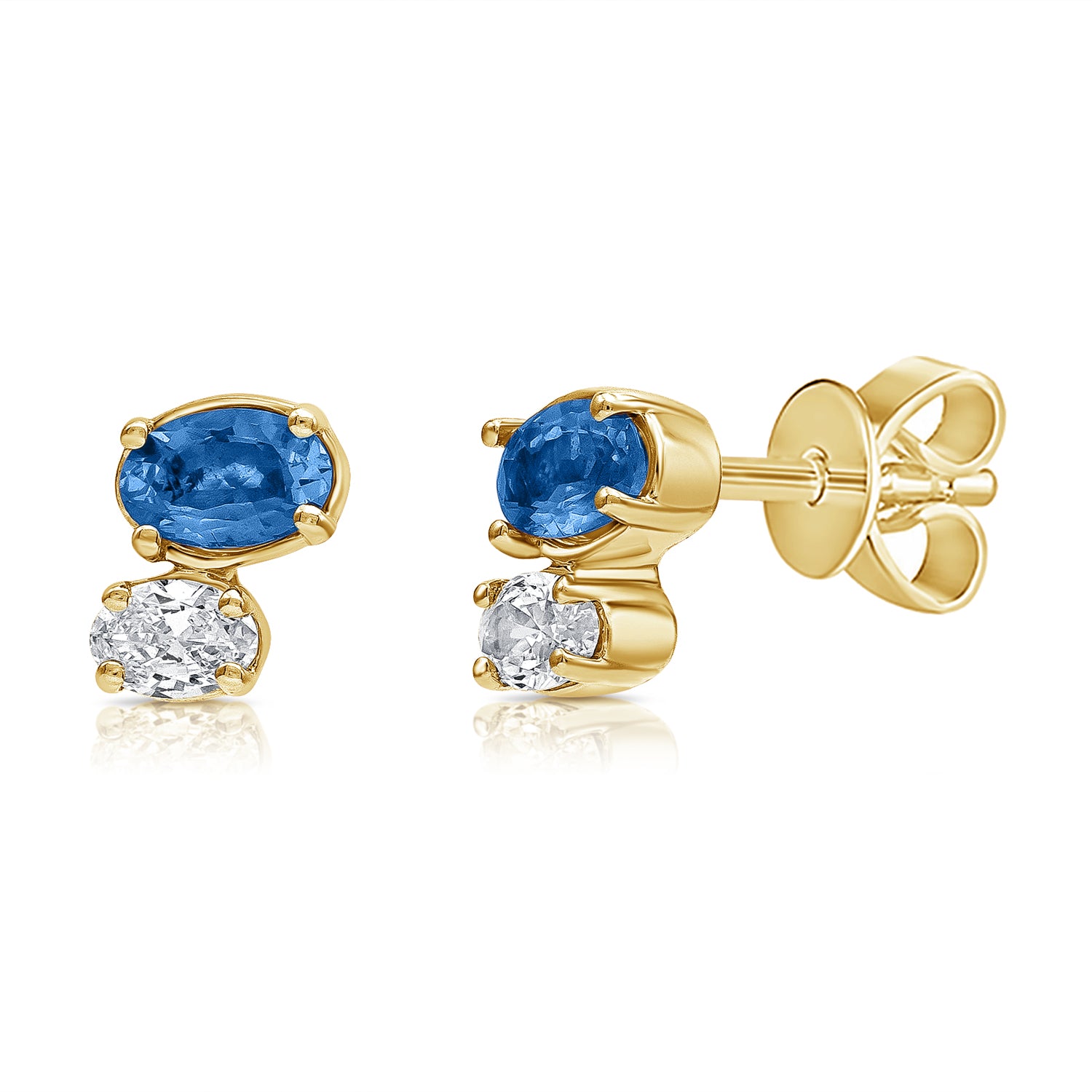 14K GOLD SAPPHIRE & DIAMOND STUD EARRINGS