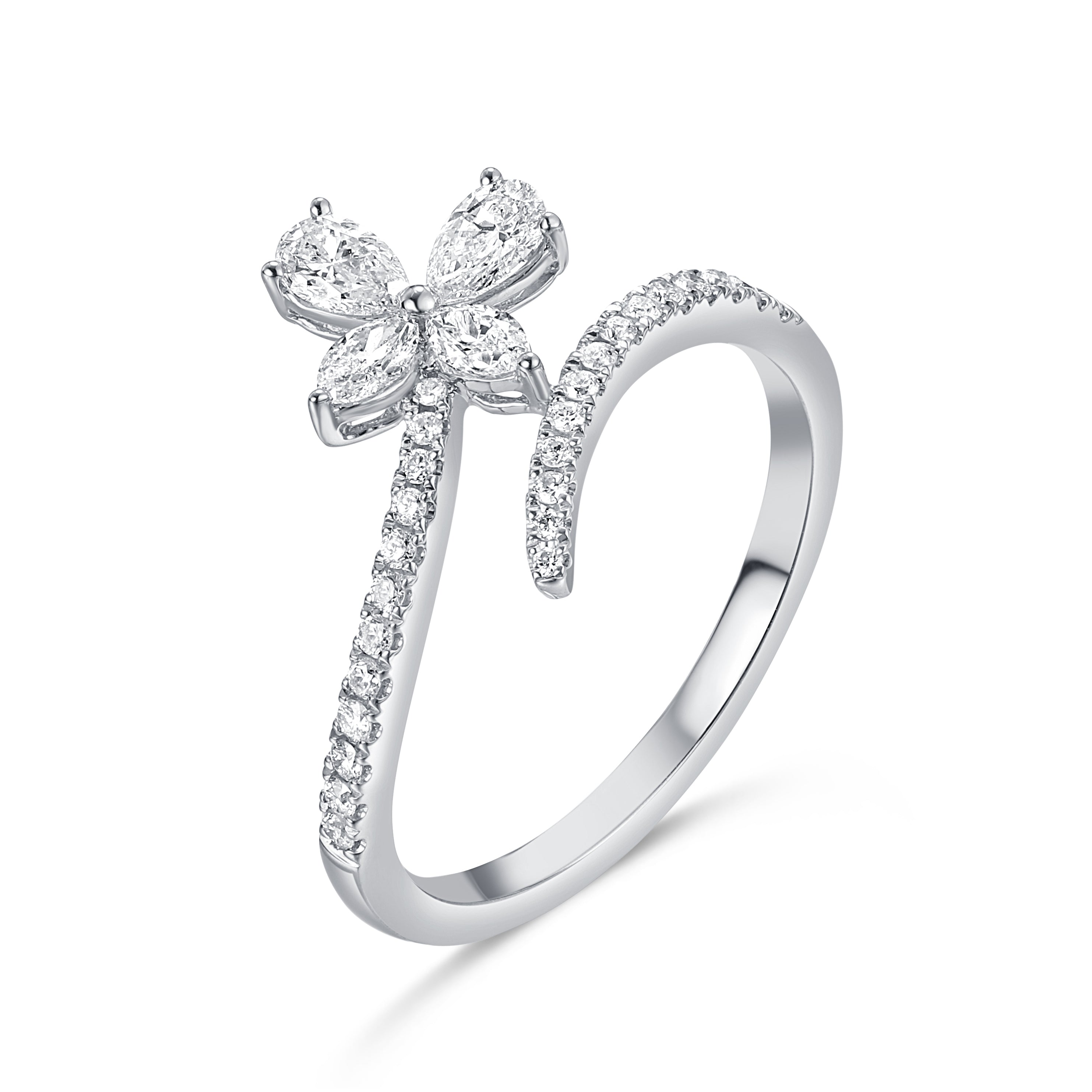 18K Gold Diamond Flower Bypass Ring - 0.51ct