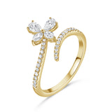 18K GOLD DIAMOND FLOWER BYPASS RING