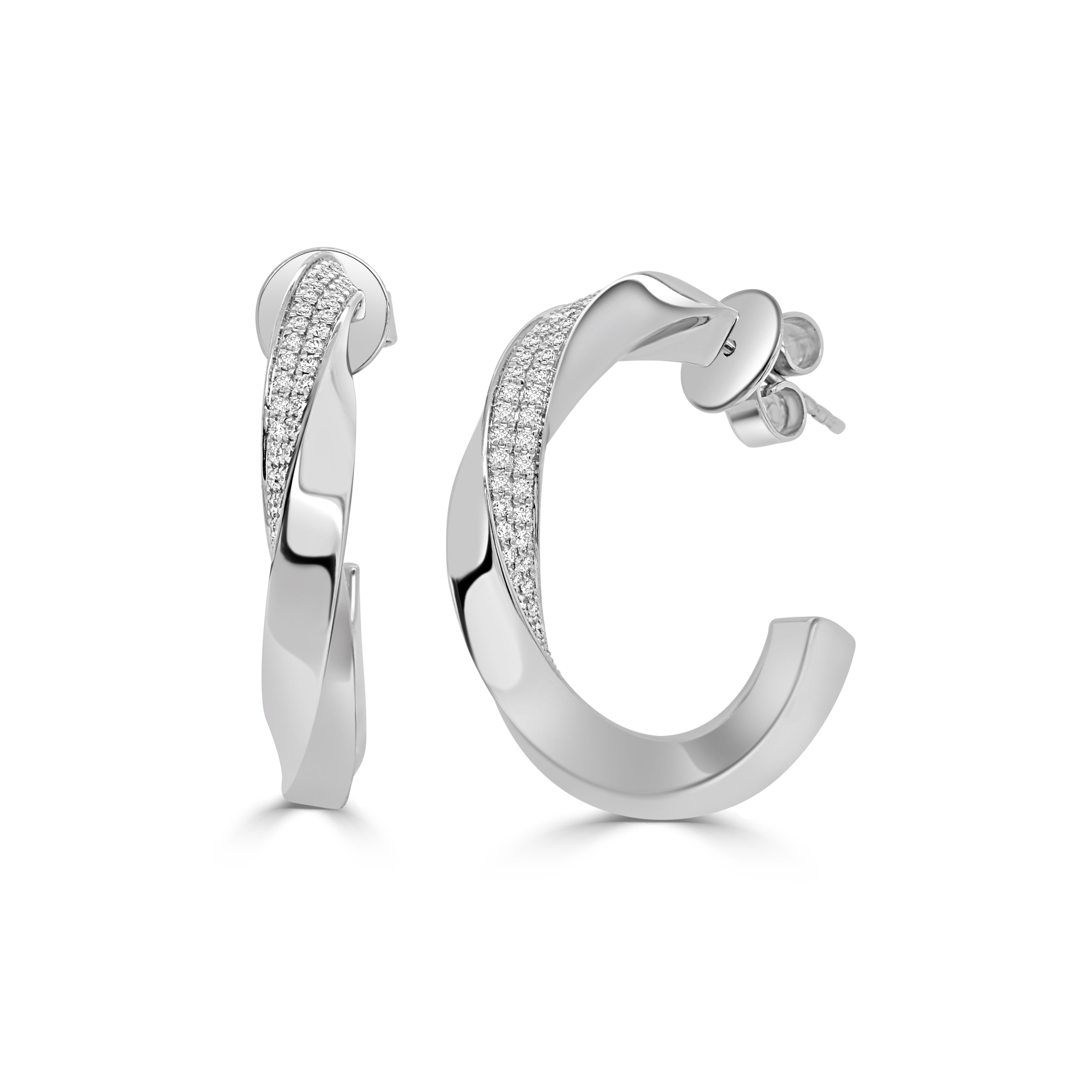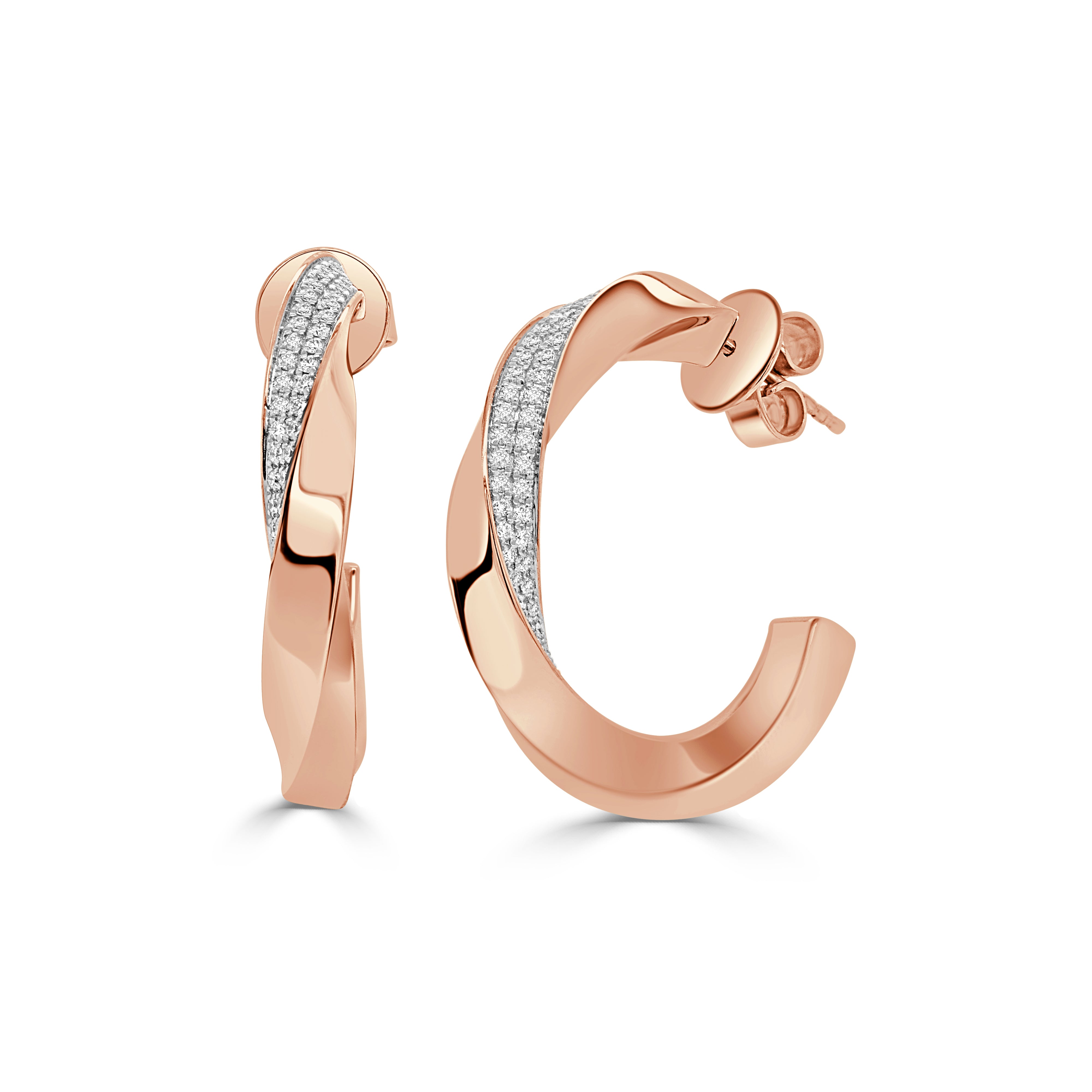 18K Gold & Diamond Twist Hoop Earrings - 0.68ct