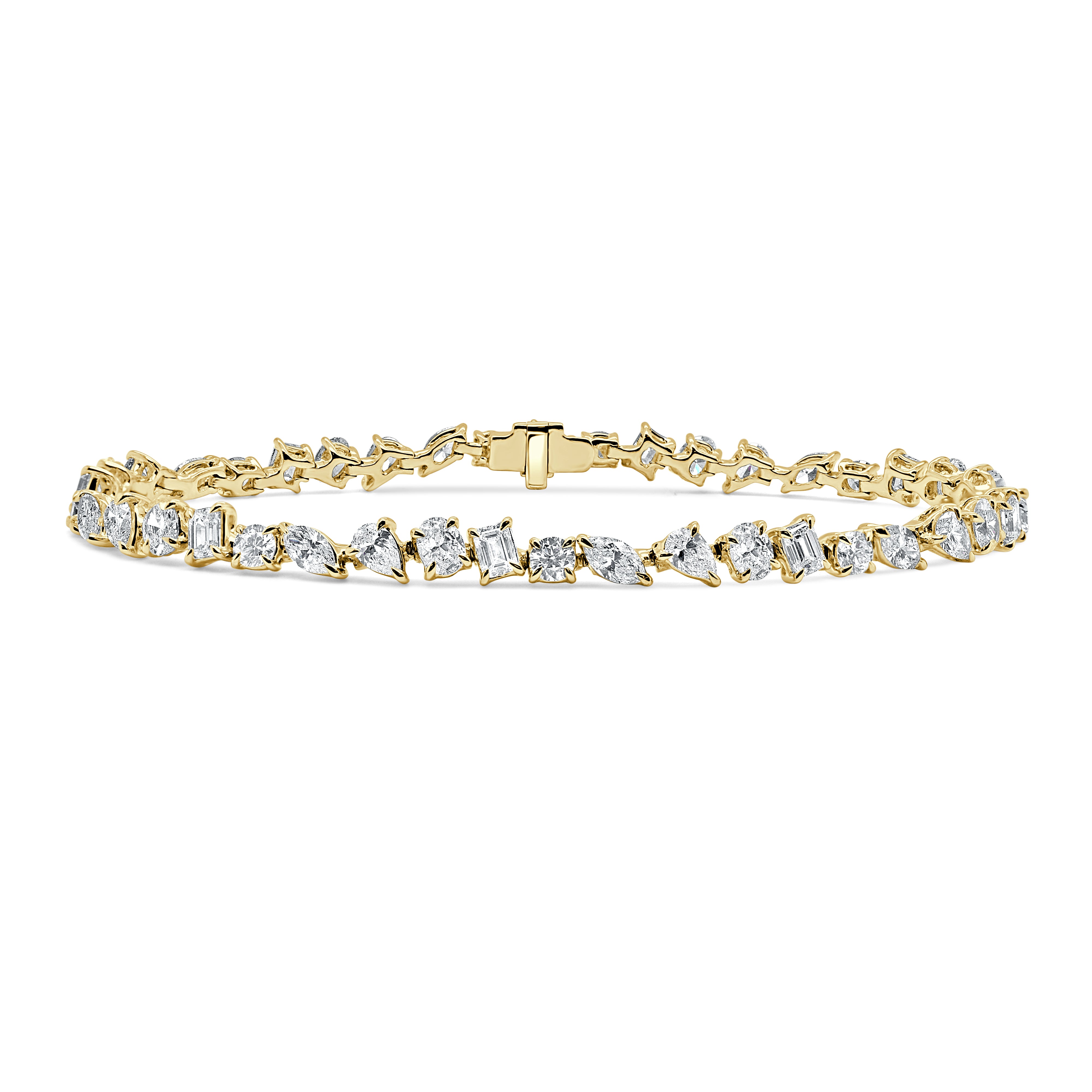 18K Gold Mixed Fancy Shape & Round Diamond Bracelet - 6.66ct