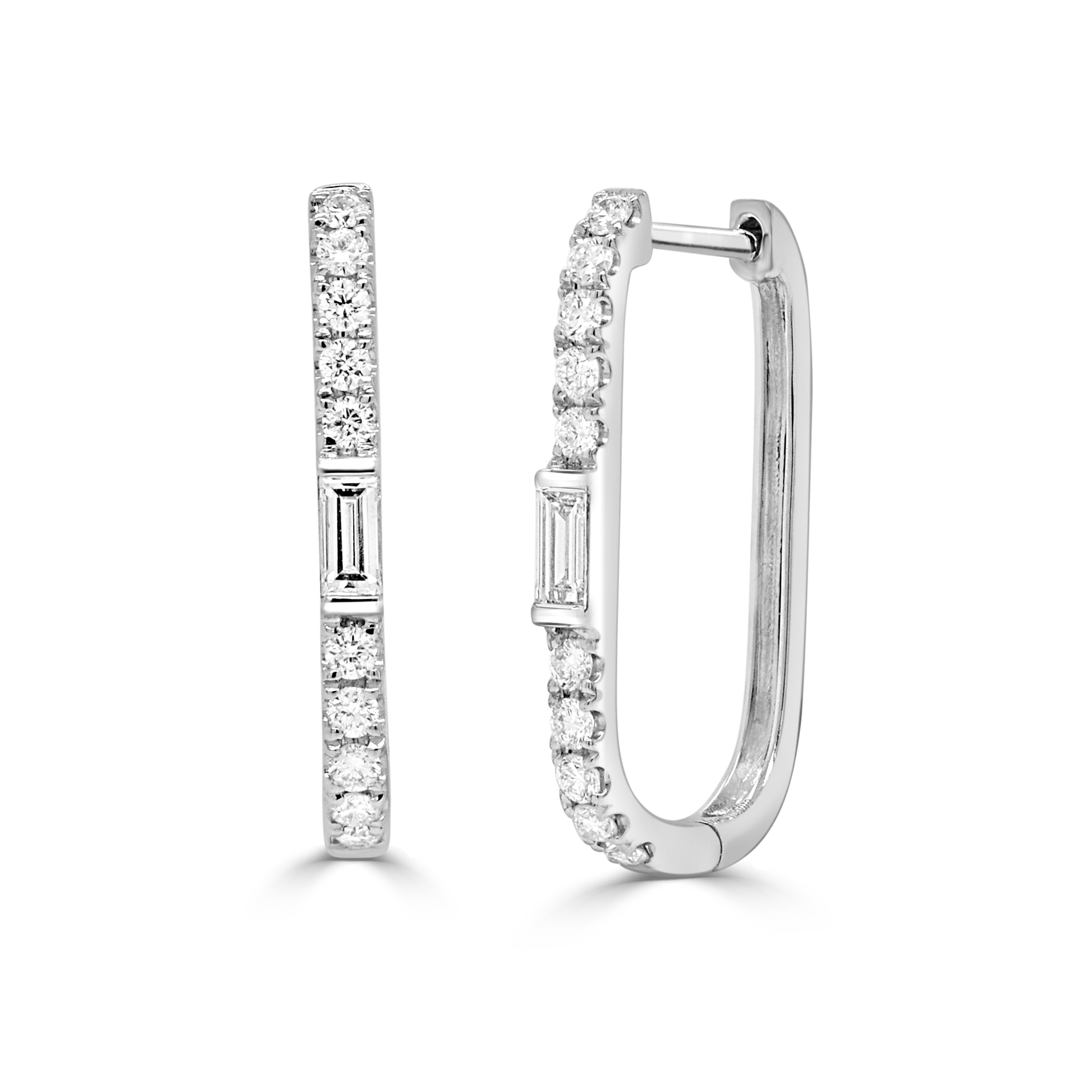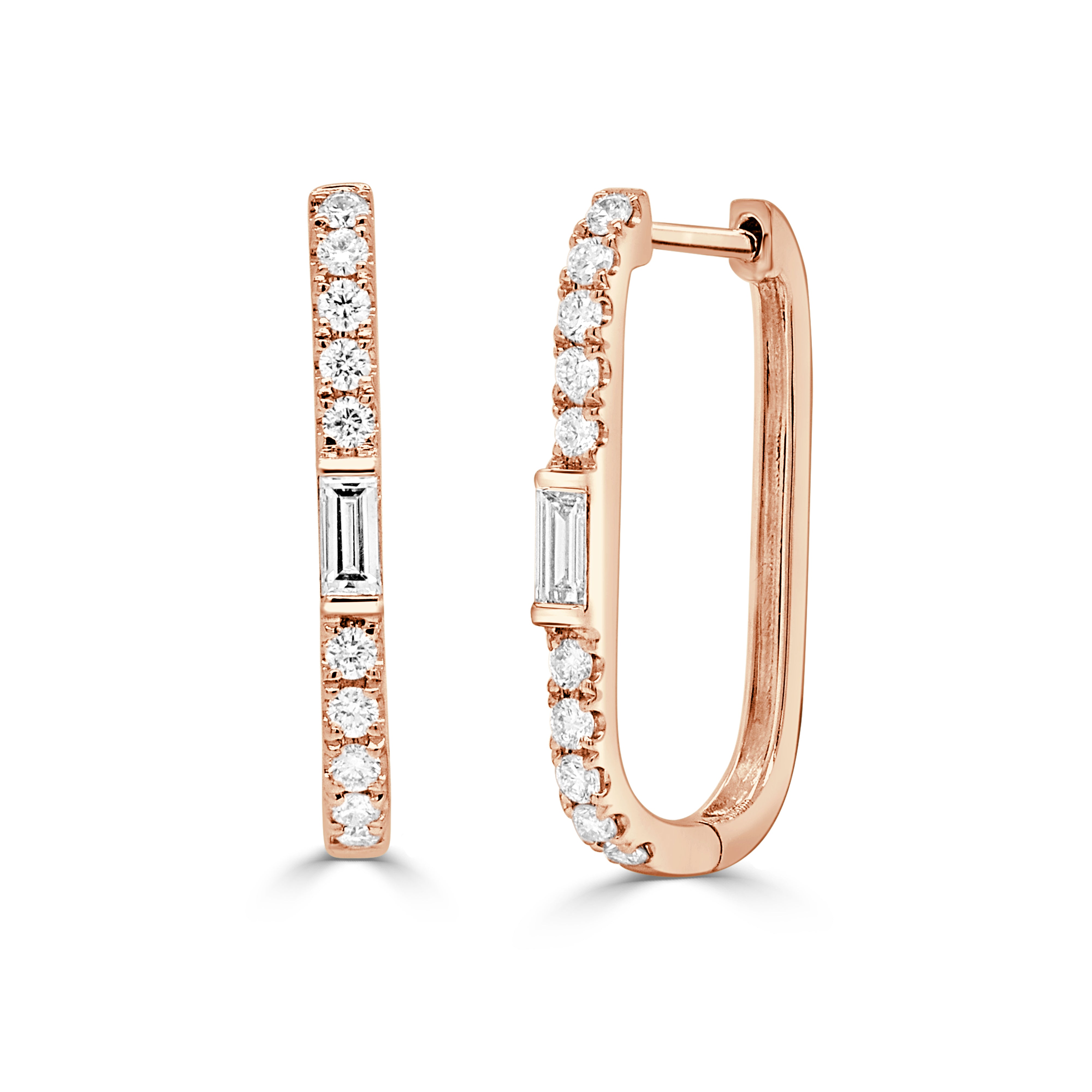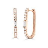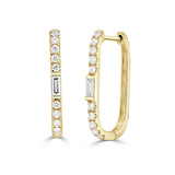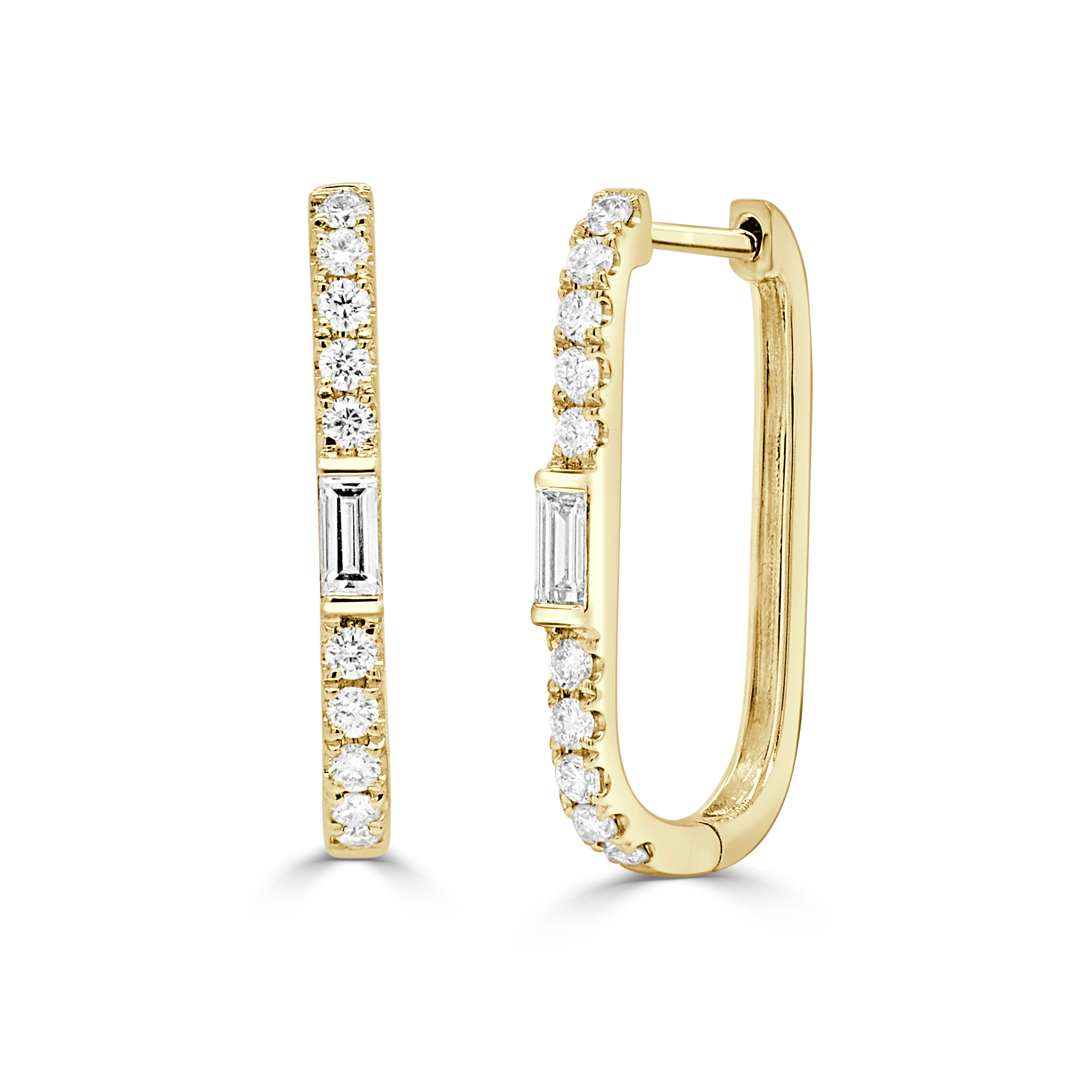 18K Gold Round & Baguette Diamond Rectangular Earrings - 0.43ct